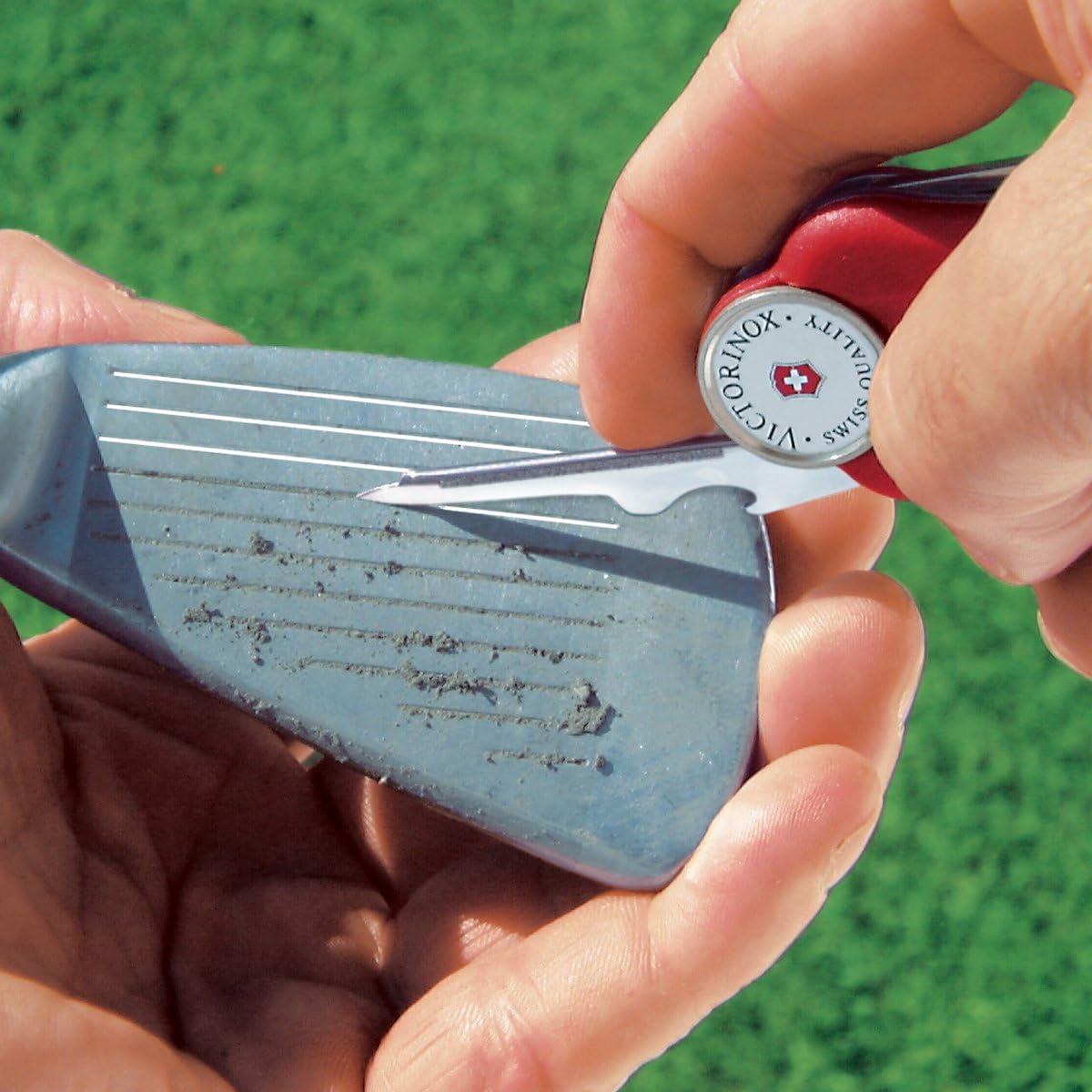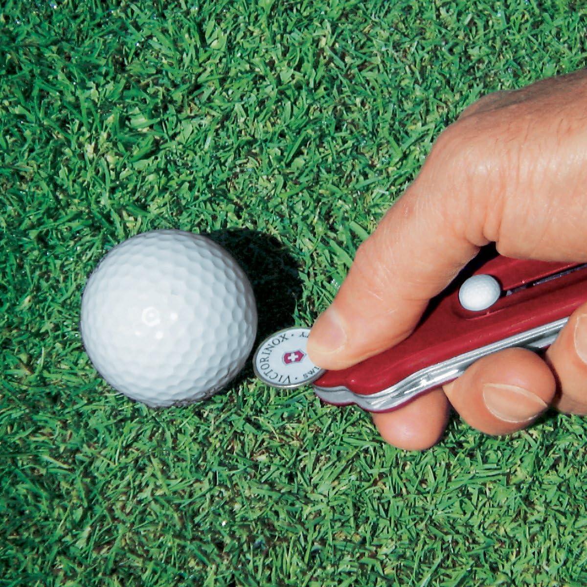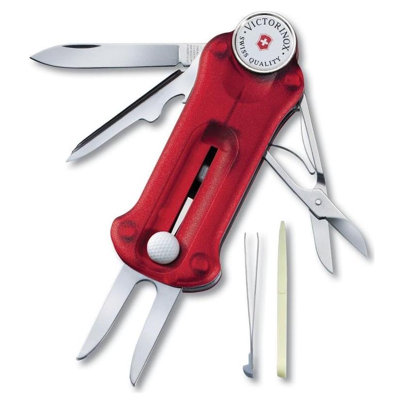 Voy a hacer algo que nunca hago, especialmente con un producto de Victorinox: voy a empezar con una queja. La única queja que tengo es que vino sin un estuche para cuando se guarda en la bolsa de golf. Cuando juego, no hay problema, lo llevo en el bolsillo del pantalón/short. Pero no hay nada conveniente para cuando está en la bolsa. Todo lo demás es PERFECTO. Marcador de pelota, el abridor de tapa de botella, por supuesto necesario. ¡La herramienta para hacer tees es increíble! ¡Todas estas her