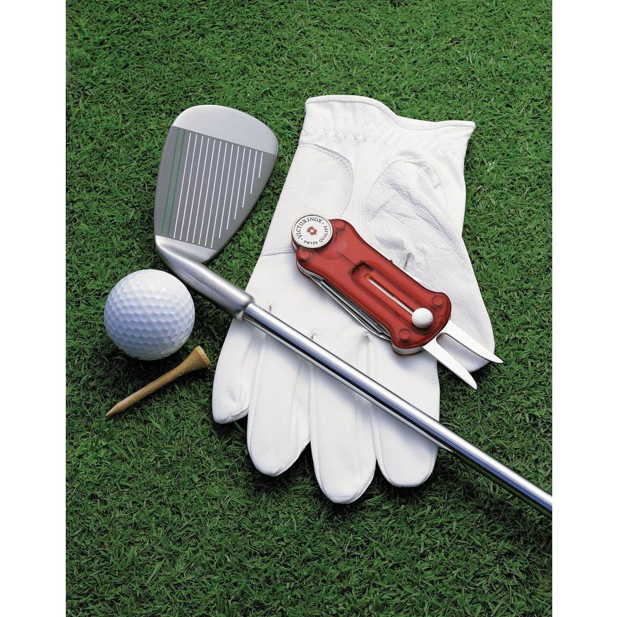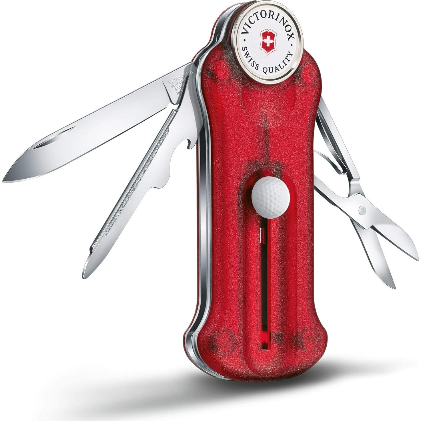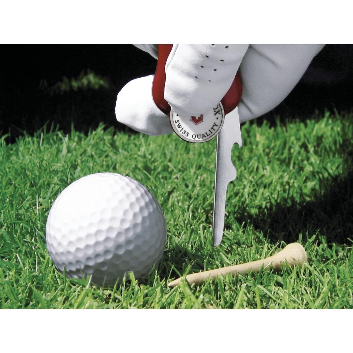 Voy a hacer algo que nunca hago, especialmente con un producto de Victorinox: voy a empezar con una queja. La única queja que tengo es que vino sin un estuche para cuando se guarda en la bolsa de golf. Cuando juego, no hay problema, lo llevo en el bolsillo del pantalón/short. Pero no hay nada conveniente para cuando está en la bolsa. Todo lo demás es PERFECTO. Marcador de pelota, el abridor de tapa de botella, por supuesto necesario. ¡La herramienta para hacer tees es increíble! ¡Todas estas her