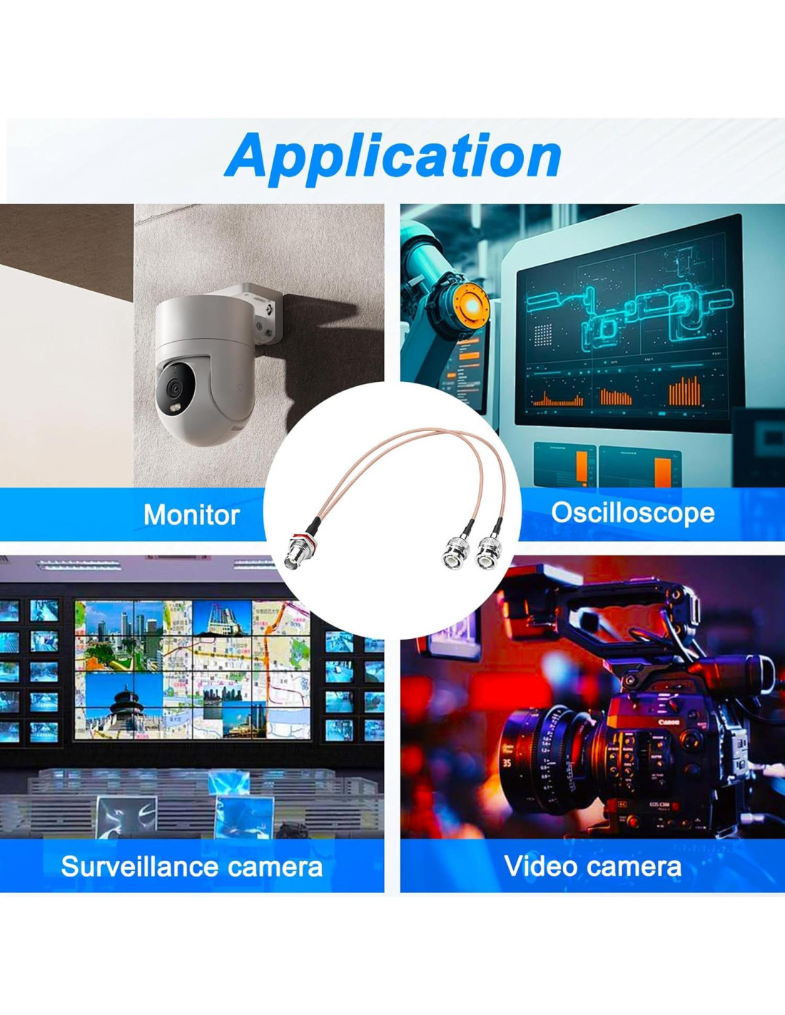 - El cable divisor BNC Y MEIRYFA es compatible con la mayoría de los dispositivos. Como cámaras, grabadoras de video, sensores de imagen, sistemas de televisión de circuito cerrado, monitores, convertidores, distribuidores de video, etc.
