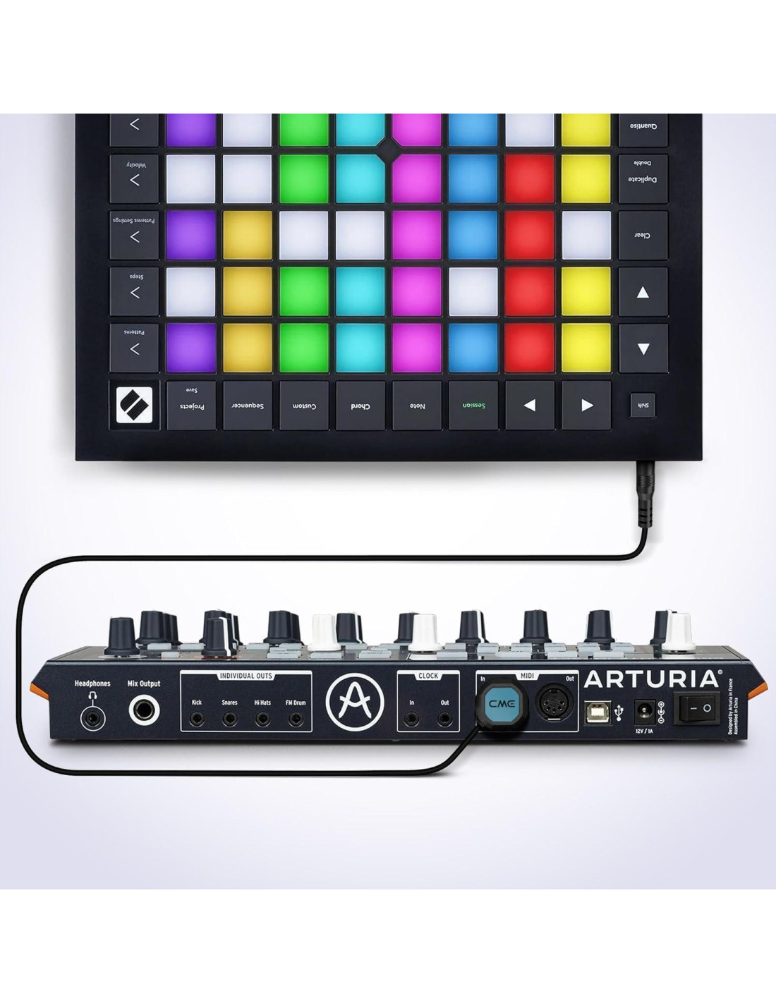 - [Compatibilidad Universal] Conecta sin problemas tus dispositivos MIDI: teclados, sintetizadores, controladores, pedales de guitarra, utilizando puertos MIDI TRS 3.5mm (1/8") Tipo A y DIN de 5 pines In, Out y Thru, siguiendo el estándar de la Asociación MIDI.