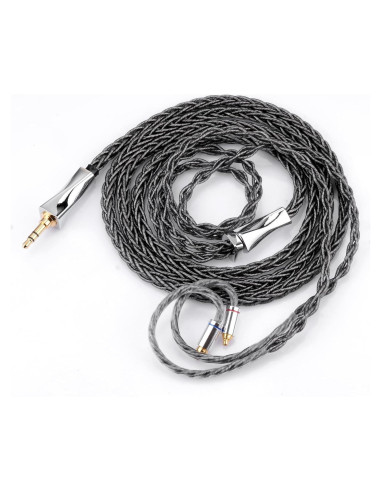 Cable mezclado de cobre cristalino monocristalino 8N recubierto de plata, cada conductor es tratado térmicamente para lograr un estado particularmente suave, y la funda está hecha de PVC duradero, diámetro del cable principal aproximadamente 6mm, diámetro del cable dividido aproximadamente 3.5mm, que tiene una excelente resistencia a la decoloración y tiene una longitud de aproximadamente 1.5m (4.9ft) con conector de 3.5mm.