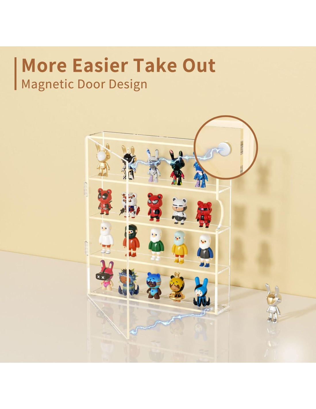 - Cierre Magnético, Acceso Sin Esfuerzo Asegura tus coleccionables con un cierre magnético; el diseño de puerta curva facilita la apertura. Esta caja de exhibición de figuras bloquea efectivamente el polvo y reduce la exposición a la luz solar y los rayos UV, ayudando a preservar la condición y el color original de tus artículos. La alfombrilla antideslizante incluida asegura estabilidad y previene accidentes. Tu Molly permanecerá en excelente estado, lista para ser admirada en cualquier momento.