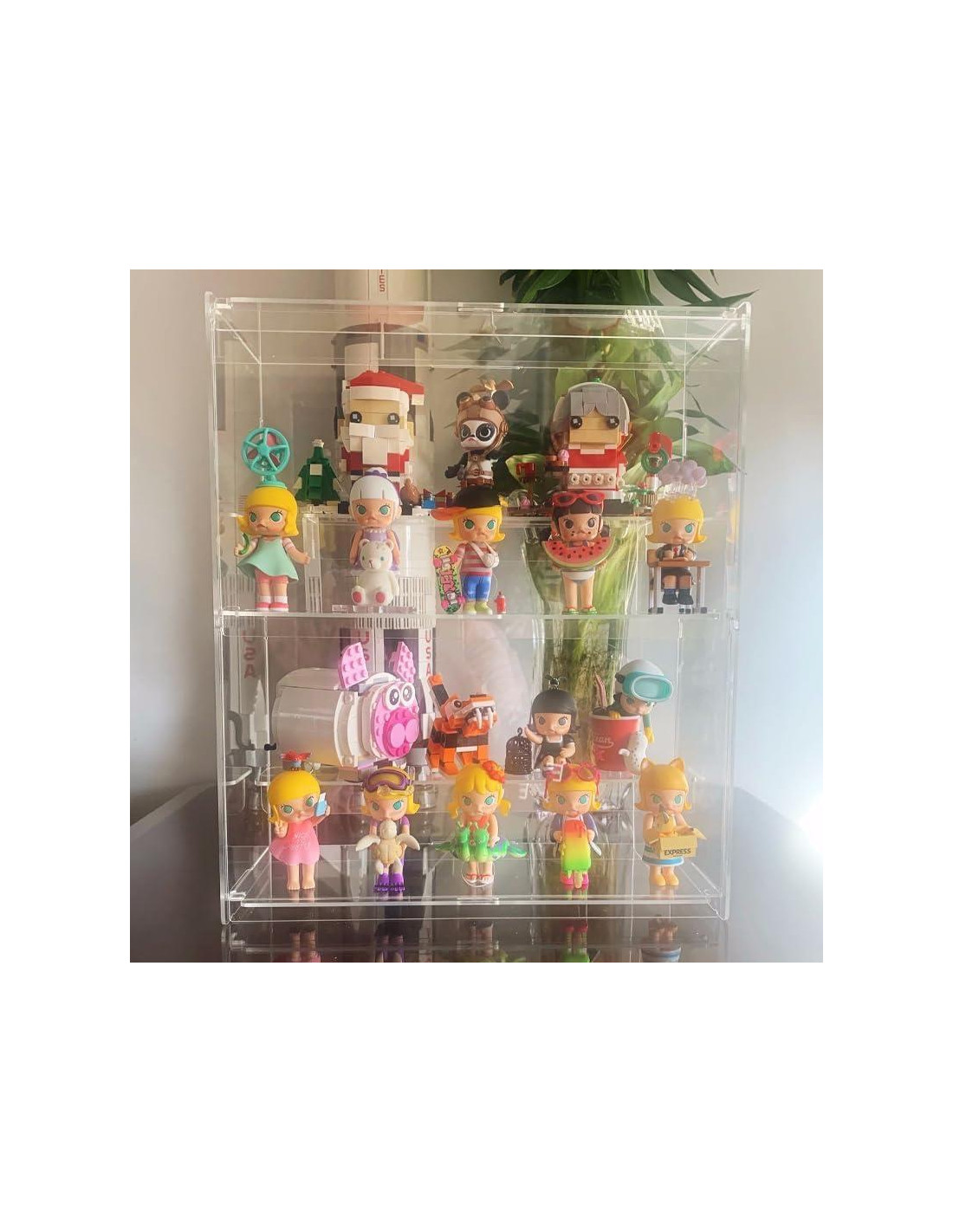 - [Diseño de 2 estantes] Tamaño total: 30.5 cm L x 12.5 cm W x 36.5 cm H. Diseño de 2 estantes, cada uno de 17 cm de alto. Esta caja de exhibición clara es perfecta para figuras de acción Funko Pop, Lego, minifiguras, juguetes coleccionables.