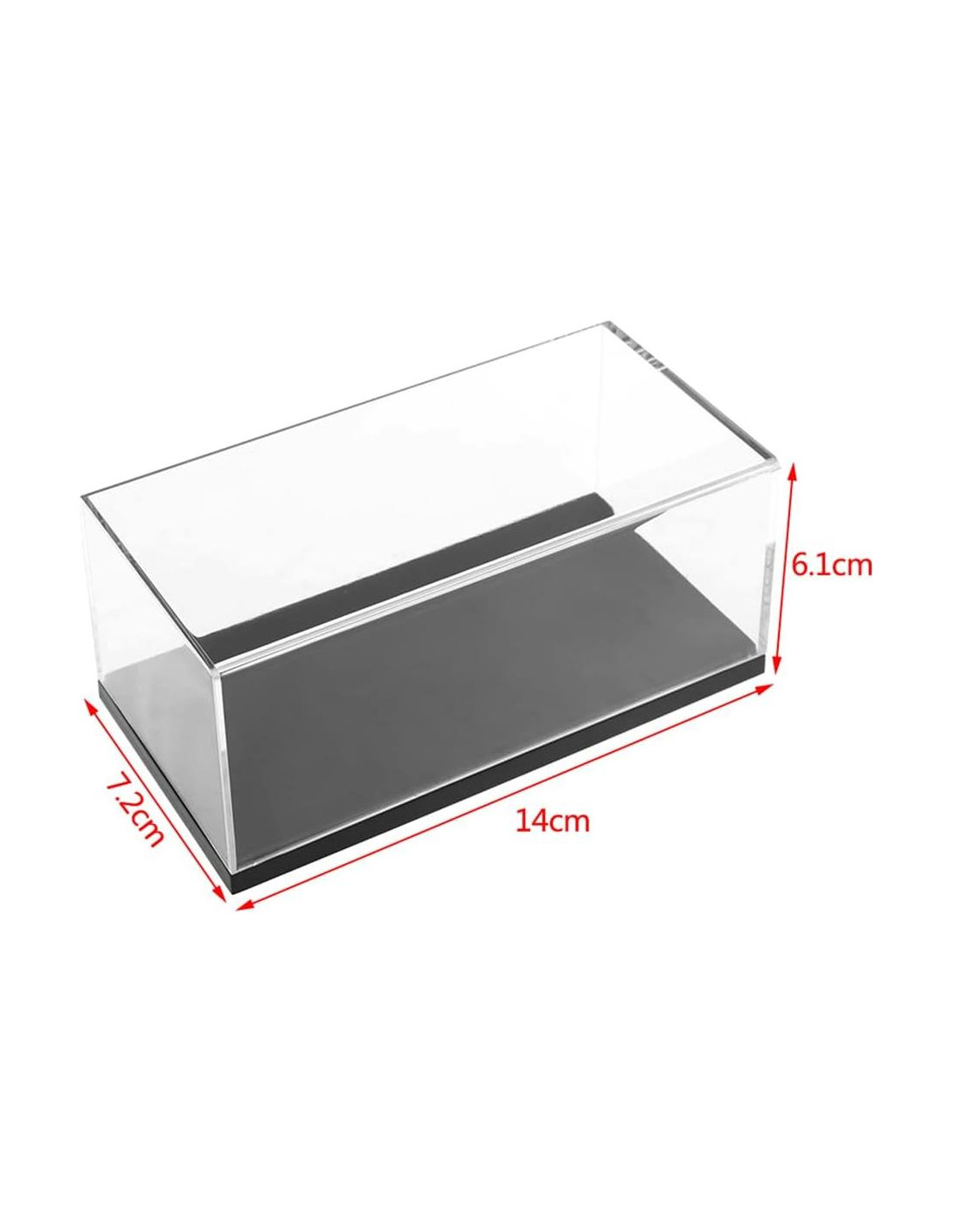 Especificaciones: 100% nuevo y de alta calidad. Adecuado para Escala de Modelo: 1/43 Tamaño: Longitud 14cm x Ancho 7.2cm x Alto 6.1cm Color: Transparente Material: Acrílico Paquete: 1 Caja de Exhibición incluida 1*Cubierta y 1*Base. Nota: 1. Por favor, permita un error de 0-1cm debido a la medición manual. Asegúrese de que no le importe antes de pujar. 2. Debido a la diferencia entre diferentes monitores, la imagen puede no reflejar el color real del artículo. ¡Gracias!