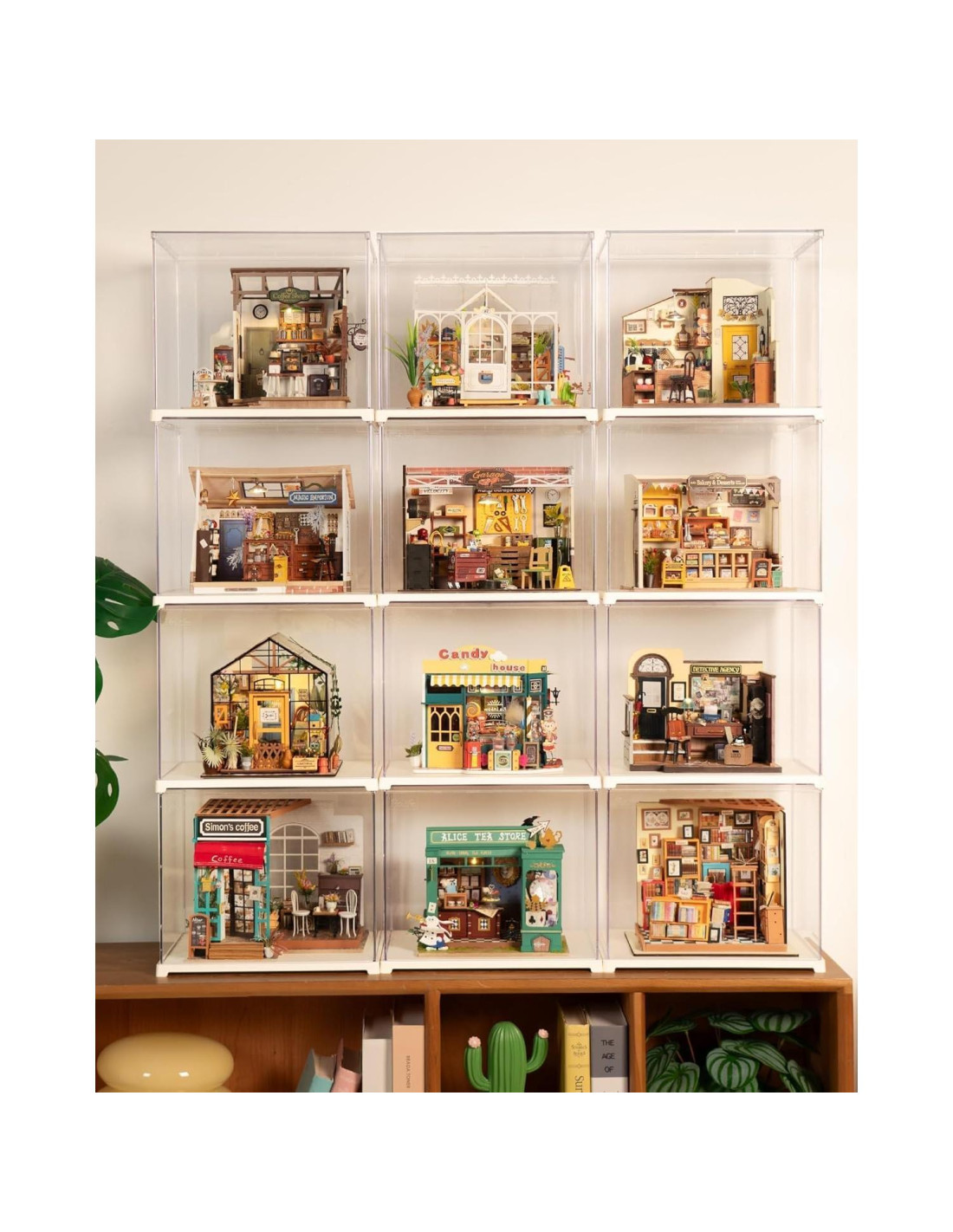 - [Tamaño] El estuche de exhibición de acrílico transparente puede acomodar artículos con un volumen máximo de 10.63x8.66x8.86 pulgadas (27x22x22.5cm), mientras que la cubierta antipolvo mide 11.3x9.3x9.6 pulgadas (29x23.5x24.5cm). Es adecuado para kits de casas en miniatura y coleccionables de todos los tamaños.