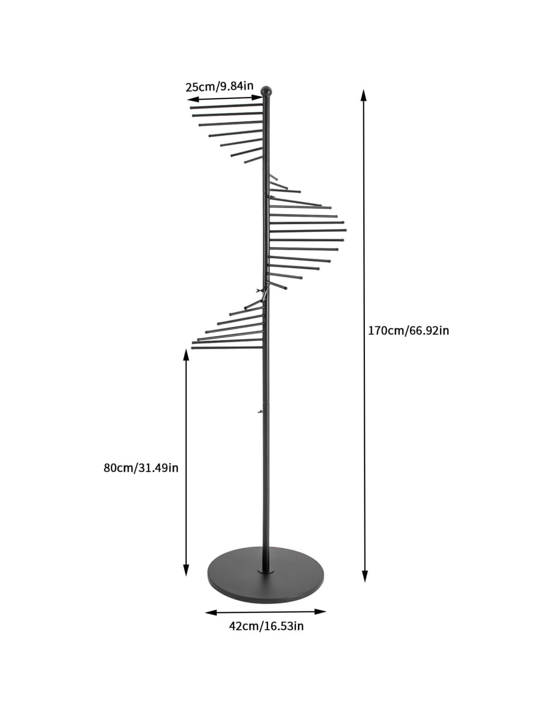 - Excelente Soporte para Exhibición de Bufandas: El diseño espiral y las múltiples varillas le dan a este producto mucho espacio para sostener y exhibir todos los ángulos de sus bufandas y ropa pequeña. No solo hace que su espacio se vea más ordenado, sino que también le brinda fácil acceso a las bufandas, sombreros u otros artículos colgados en él.