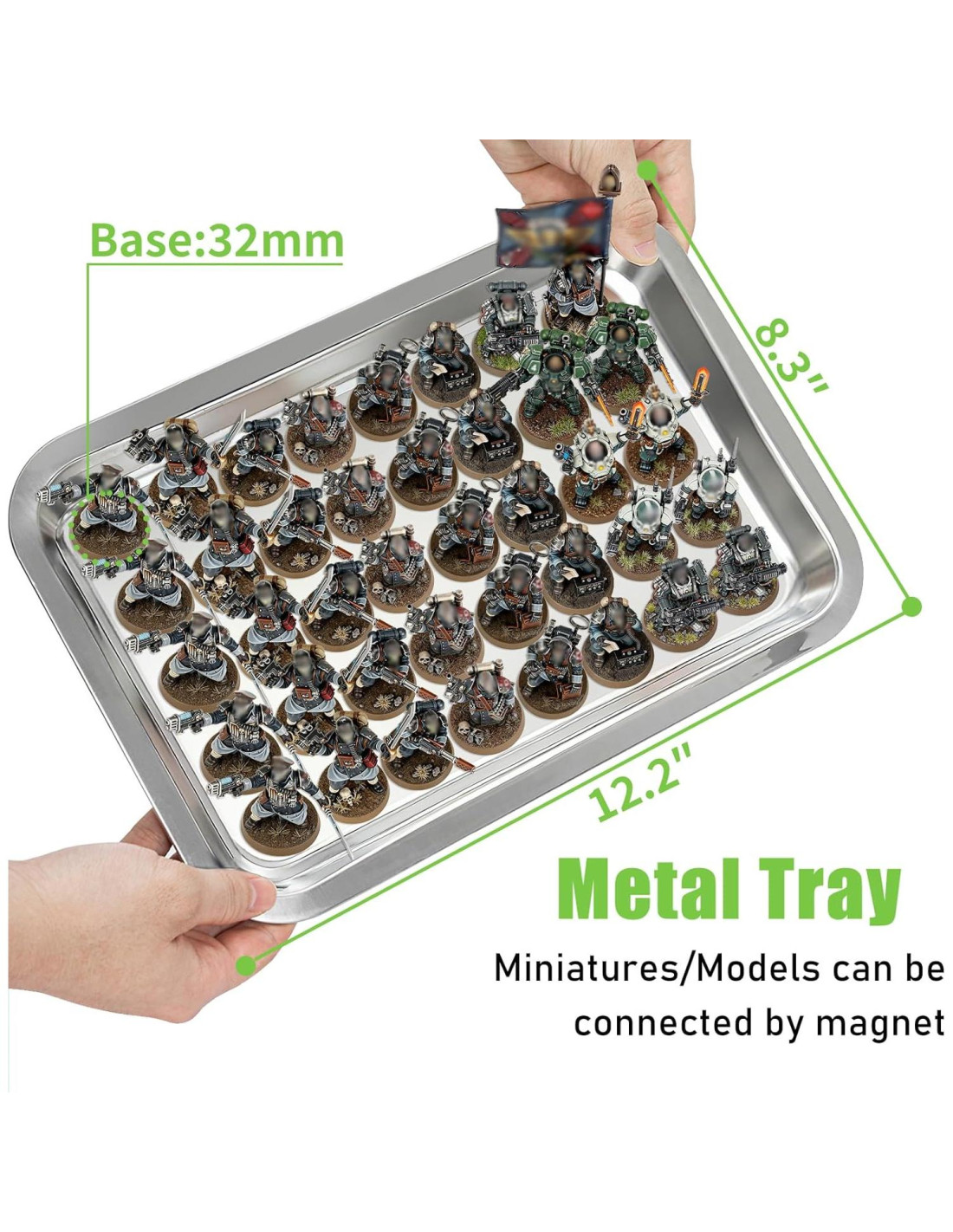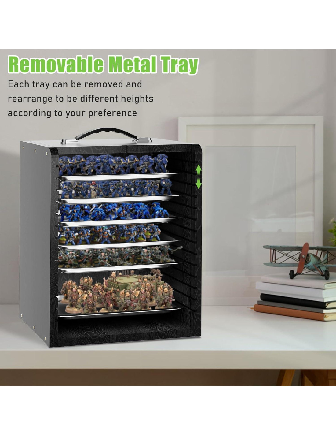 - [6 Bandejas de Metal] Esta caja de transporte miniatura incluye 6 bandejas magnéticas de metal que se pueden fijar con imanes para asegurar que las miniaturas permanezcan en su lugar durante el transporte o almacenamiento. La bandeja se desliza fácilmente para un fácil almacenamiento y visualización del contenido. La altura de la bandeja se puede ajustar para acomodar miniaturas de diferentes tamaños