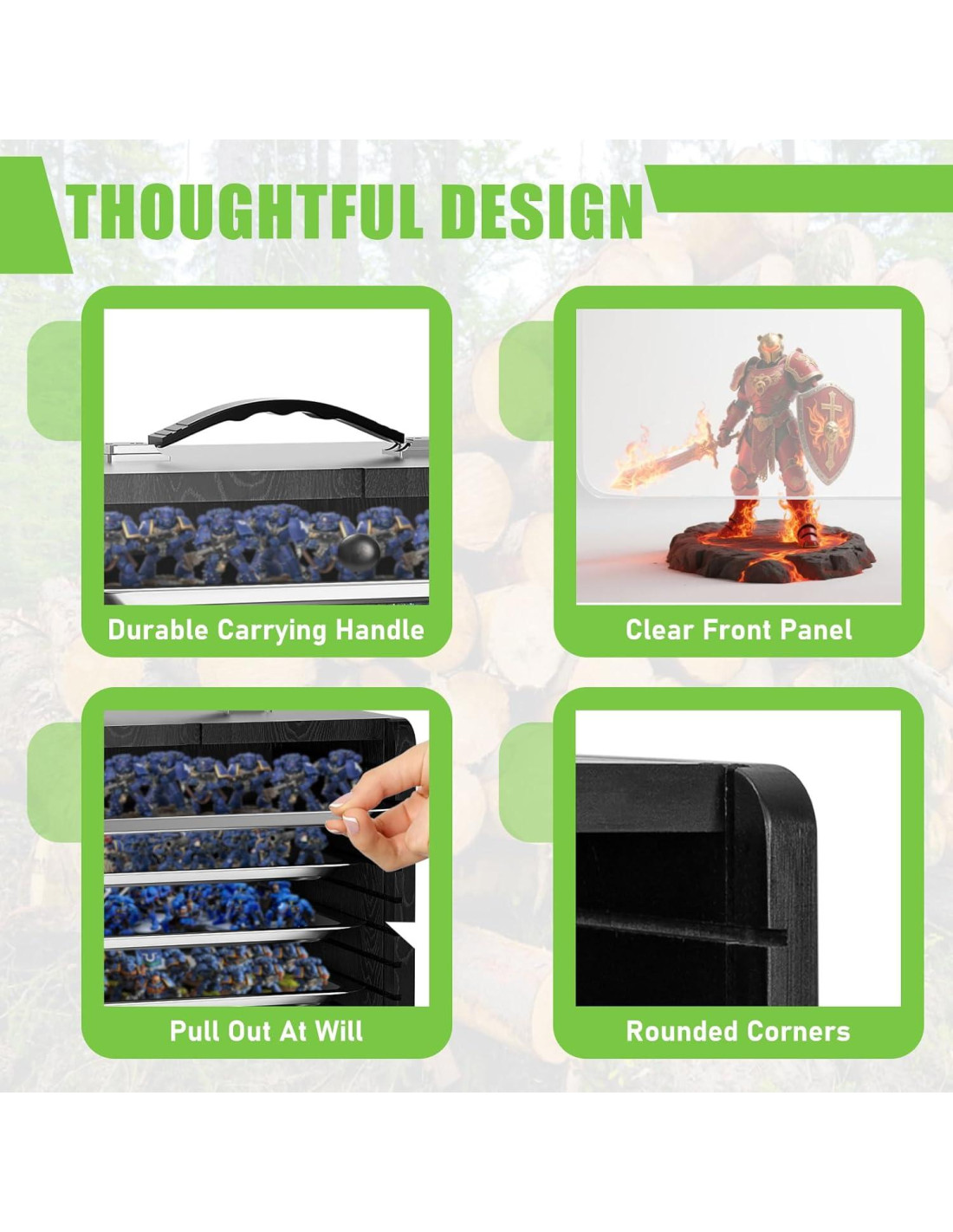 - [Ventana Transparente] El panel acrílico proporciona una vista clara para que puedas encontrar fácilmente lo que necesitas. La caja de exhibición de miniaturas te permite exhibir tu colección mientras mantienes tus miniaturas libres de polvo. ¡Lleva tus miniaturas contigo y exhibe con orgullo dondequiera que vayas!
