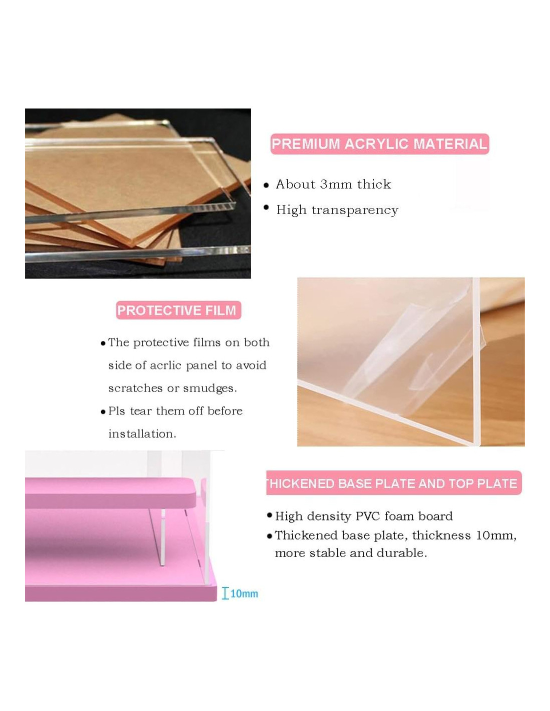 - [Material Premium] Nuestra caja de exhibición para coleccionables está hecha de una hoja de acrílico premium de 3 mm de grosor y un tablero de espuma de pvc de alta densidad de 10 mm de grosor. Los paneles de acrílico premium proporcionan una transparencia clara que permite una visualización cercana de tus coleccionables. Sólido cuando está ensamblado, permitiendo apilamiento