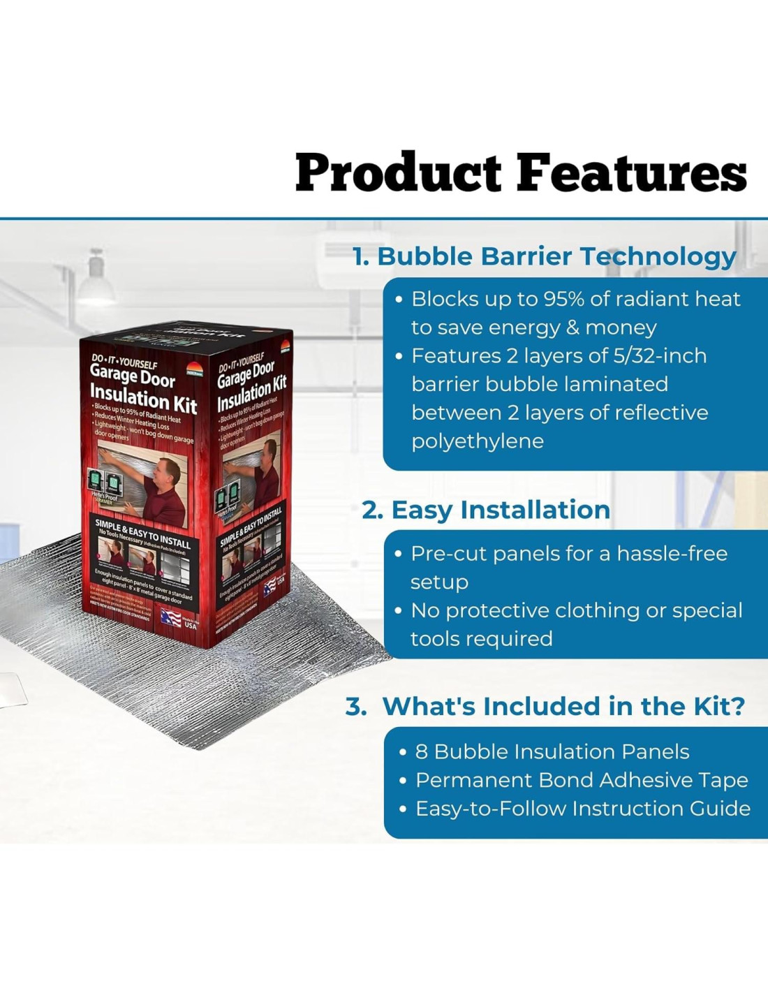 - El Kit Incluye: 8 Paneles de Aislamiento de Burbuja Reach Barrier(Tm), Cinta Adhesiva de Unión Permanente, Esponja Limpiadora de Puertas de Garaje y Guía de Instrucciones Fácil de Seguir