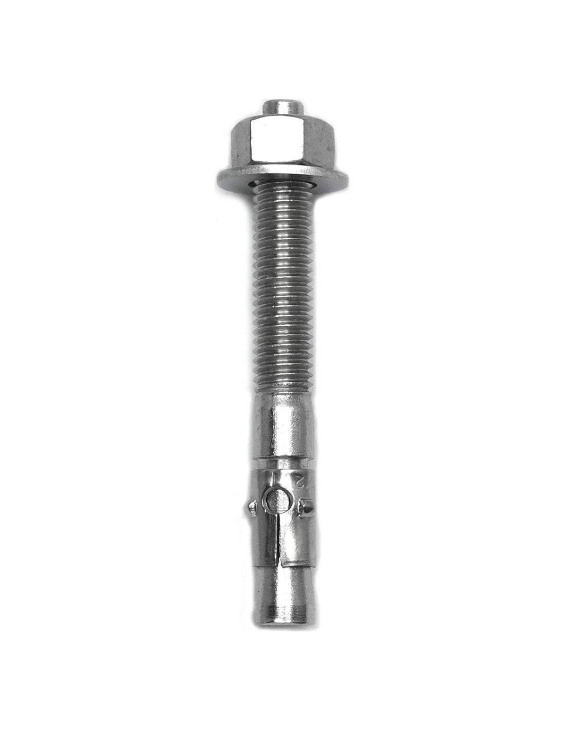Aplicaciones El ancla está hecha de acero inoxidable 304. Este ancla está diseñada para su uso en concreto solamente, y nunca debe ser utilizada en materiales base de bloque o ladrillo. Entorno El ancla está diseñada para su uso en un entorno húmedo. Diámetro del agujero / Diámetro de la broca El ancla requiere un agujero de 1/2" que debe ser perforado en el material base (concreto solamente). El agujero debe ser perforado con una broca de punta de carburo que cumpla con los estándares ANSI y utilizada en un taladro de percusión. Diámetro del ancla El diámetro del ancla es de 1/2". Longitud del ancla La longitud del ancla es de 3-3/4". Longitud de la rosca La longitud de las roscas en el ancla es de 2-1/4". Incrustación mínima La incrustación mínima del ancla en el concreto es de 2-1/4". Por lo tanto, el ancla debe ser instalada de manera que un mínimo de 2-1/4" del ancla esté incrustado en el concreto. Grosor máximo del accesorio El grosor máximo del accesorio o el grosor máximo del material que se está fijando para un ancla es de 1". Esto asegurará que se cumpla la incrustación mínima de 2-1/4". Diámetro del agujero del accesorio El agujero en el accesorio o material que se está fijando debe ser más grande que el diámetro designado del ancla. El ancla de 1/2" requiere que el agujero en el accesorio sea de 5/8". Valor de torque Para estar correctamente fijado en el concreto, el ancla debe ser ajustada a un torque entre 50 - 60 ft./lbs. Espaciado entre anclas Cada ancla debe estar espaciada a una distancia mínima de 5" entre sí cuando se mide de centro a centro. Distancia del borde Es muy importante no instalar el ancla a menos de 2-1/2" de un borde no soportado del concreto.