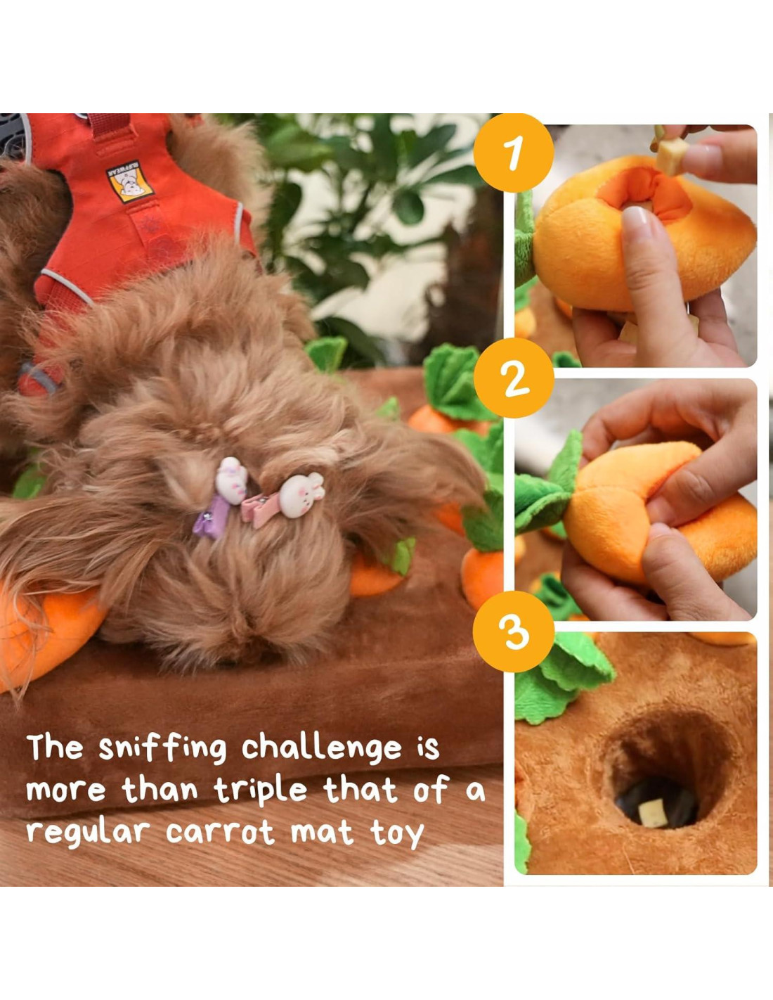 - Rompecabezas Atractivo con 24 Bolsillos para Golosinas: Este Juguete de Rompecabezas de Granja de Zanahorias involucra los instintos naturales y habilidades de resolución de problemas de tu perro mientras busca ansiosamente golosinas ocultas dentro de las 12 zanahorias y la alfombra de esponja.