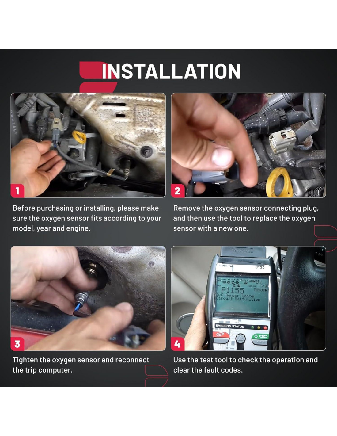 - [Instrucciones de Instalación] - Hecho de acuerdo con las especificaciones OE, tenga en cuenta que debe tener mucho cuidado al desmontar, para no dañar el tubo de escape y las partes roscadas del sensor de oxígeno, necesita usar herramientas de desmontaje profesionales. Además, la temperatura del tubo de escape y del sensor de oxígeno es muy alta después de que el vehículo está en funcionamiento. Tenga cuidado con las quemaduras y espere hasta que el tubo de escape se haya enfriado completamente antes de proceder al siguiente paso.