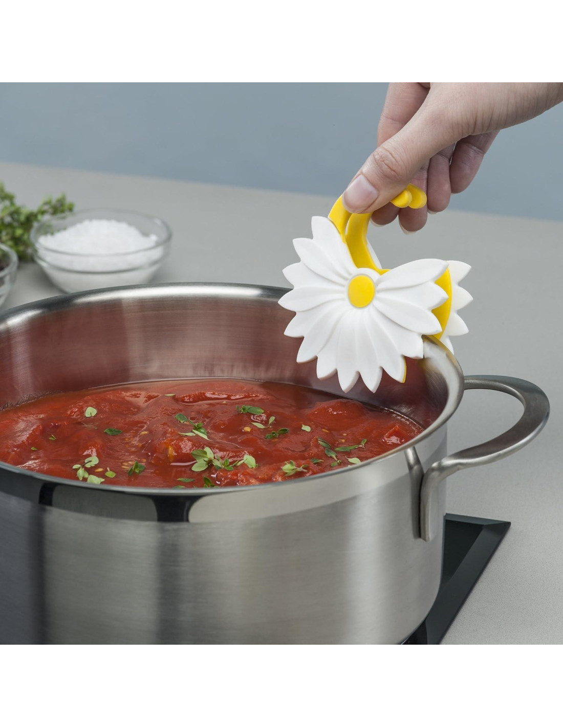 - Diseñado para enganchar utensilios de cocina al borde de cualquier cacerola evitando derrames, manchas y residuos en la superficie de la cocina.