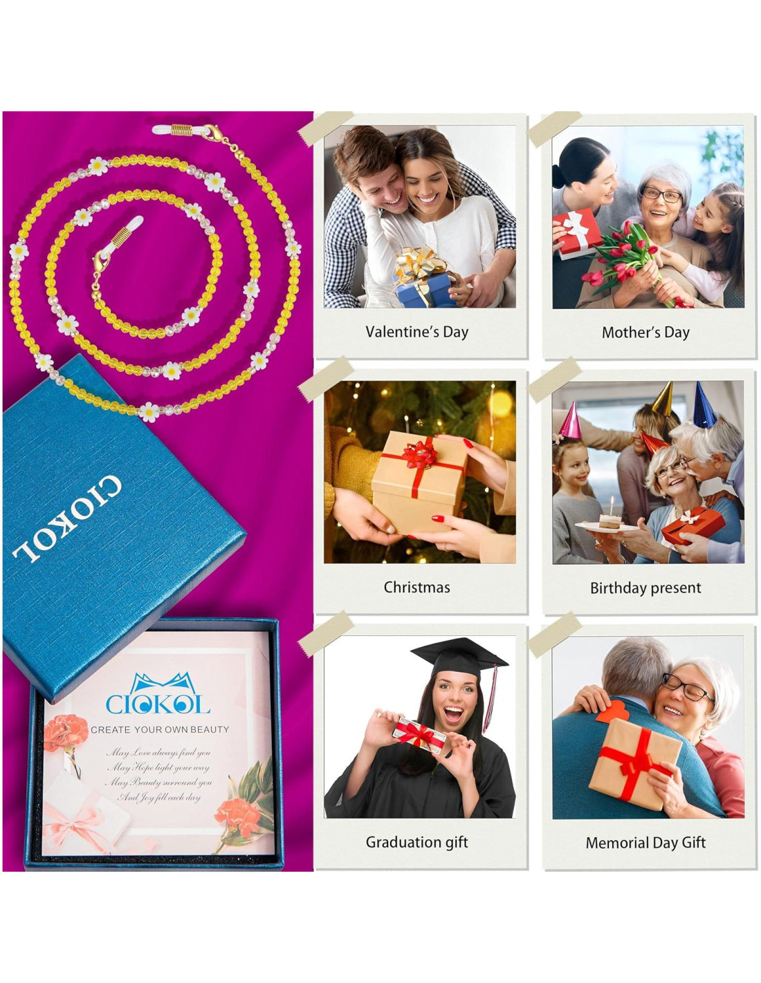 - Detalle Único Hecho a Mano: Cada cuenta de girasol de estas cadenas de gafas para mujeres es cuidadosamente seleccionada y CIOKOL presta atención a cada detalle para asegurar una pieza única y de calidad premium que te haga destacar entre la multitud. Además, el material de esta cadena de gafas de lectura también es fácil de limpiar y mantener, solo un simple paño puede mantener las cuentas brillantes y con un aspecto fresco. Haciendo que el mantenimiento sea sin esfuerzo.