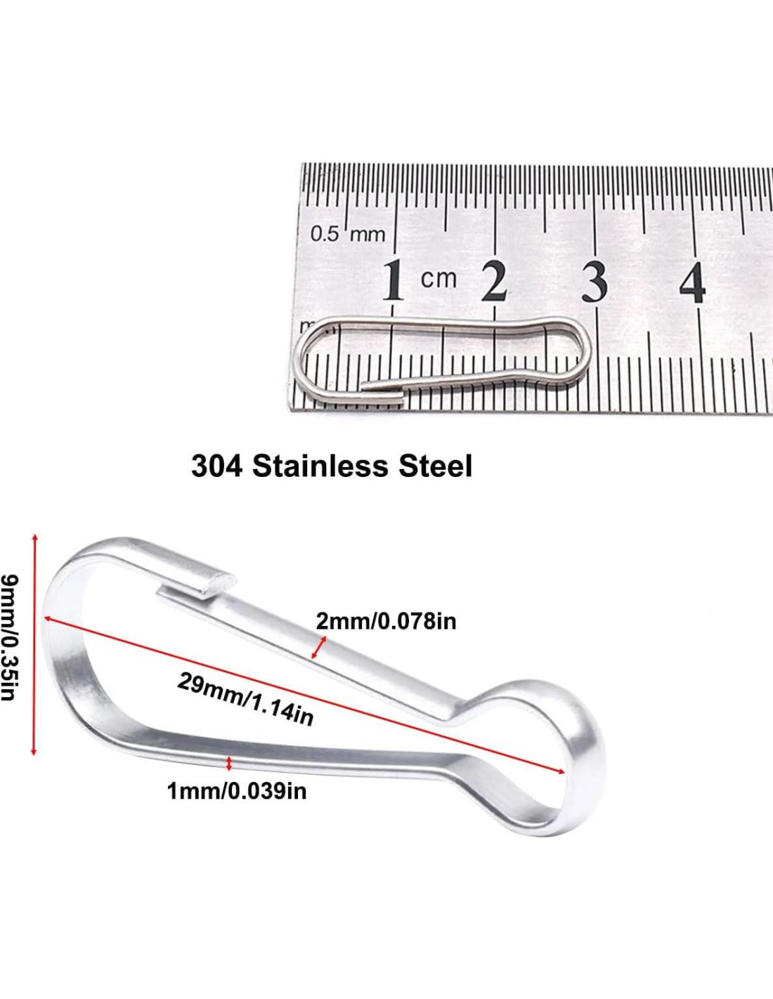 - El paquete incluye: 20 piezas de ganchos de clips de lanyard. El tamaño total es de aproximadamente 29mm (1.14 pulgadas) de largo y 9mm (0.35 pulgadas) de ancho, el alambre es de aproximadamente 2mm (0.078 pulgadas) de ancho y 1mm (0.039 pulgadas) de grosor.