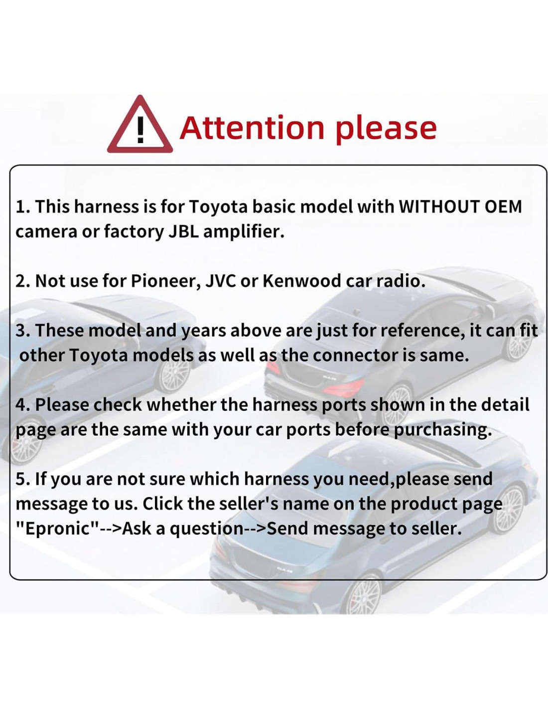- Nota: Debido a la existencia de diferentes versiones de bajo/medio/alto para diferentes modelos, no es completamente compatible con todos los modelos. Por favor verifica si los puertos del arnés mostrados en la página de detalles son los mismos que los puertos de tu coche antes de comprar