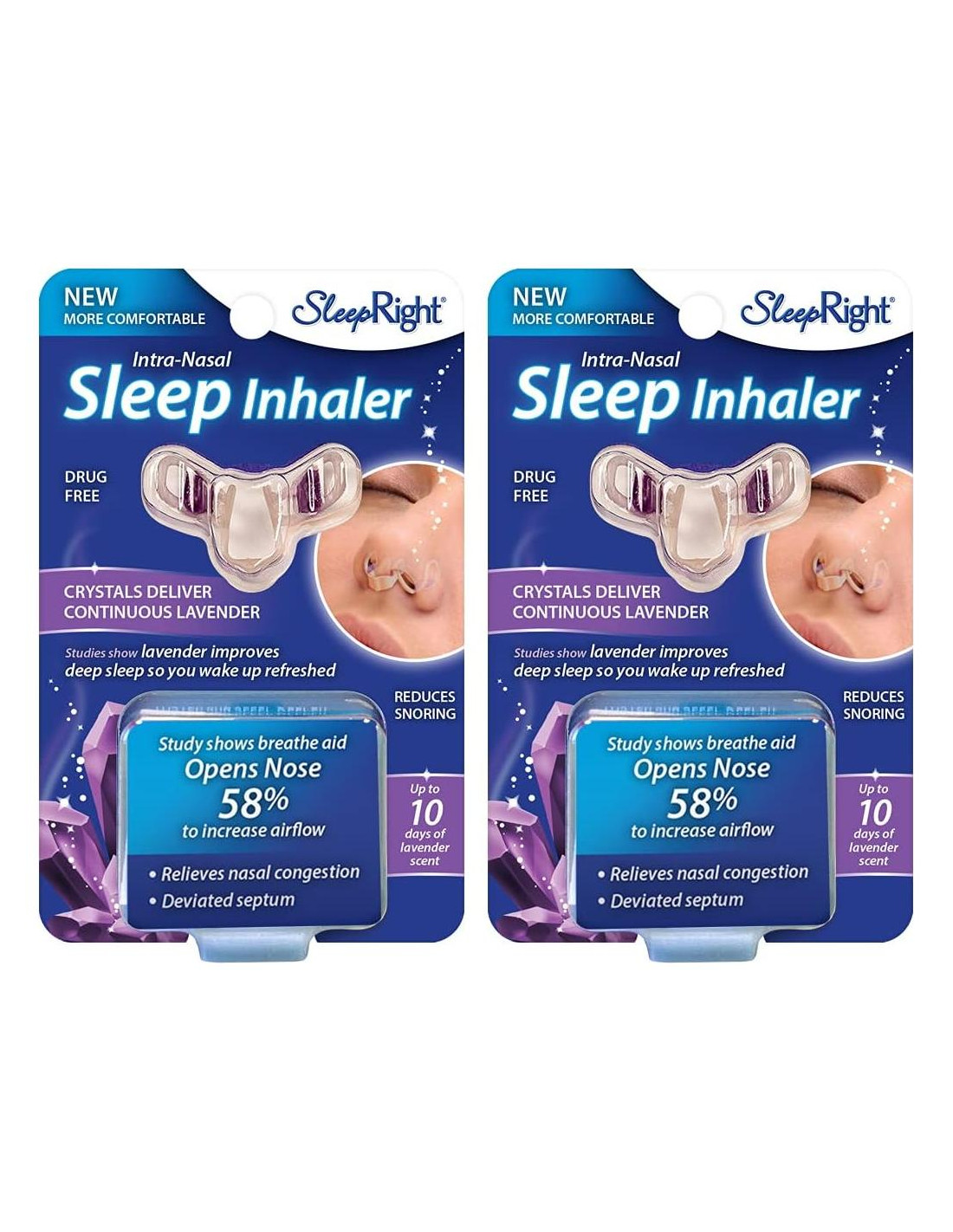 El inhalador nasal intra-nasal Sleep de SleepRight incluye cristales de lavanda sin fármacos que te ayudan a dormir más profundamente y despertar renovado. Utilizando la misma tecnología patentada establecida en el dispositivo de respiración intra-nasal SleepRight y el inhalador de vapor para abrir la nariz un 58% (aproximadamente 147.32 mm) para aumentar el flujo de aire y proporcionar un aroma relajante de lavanda de liberación sostenida.
