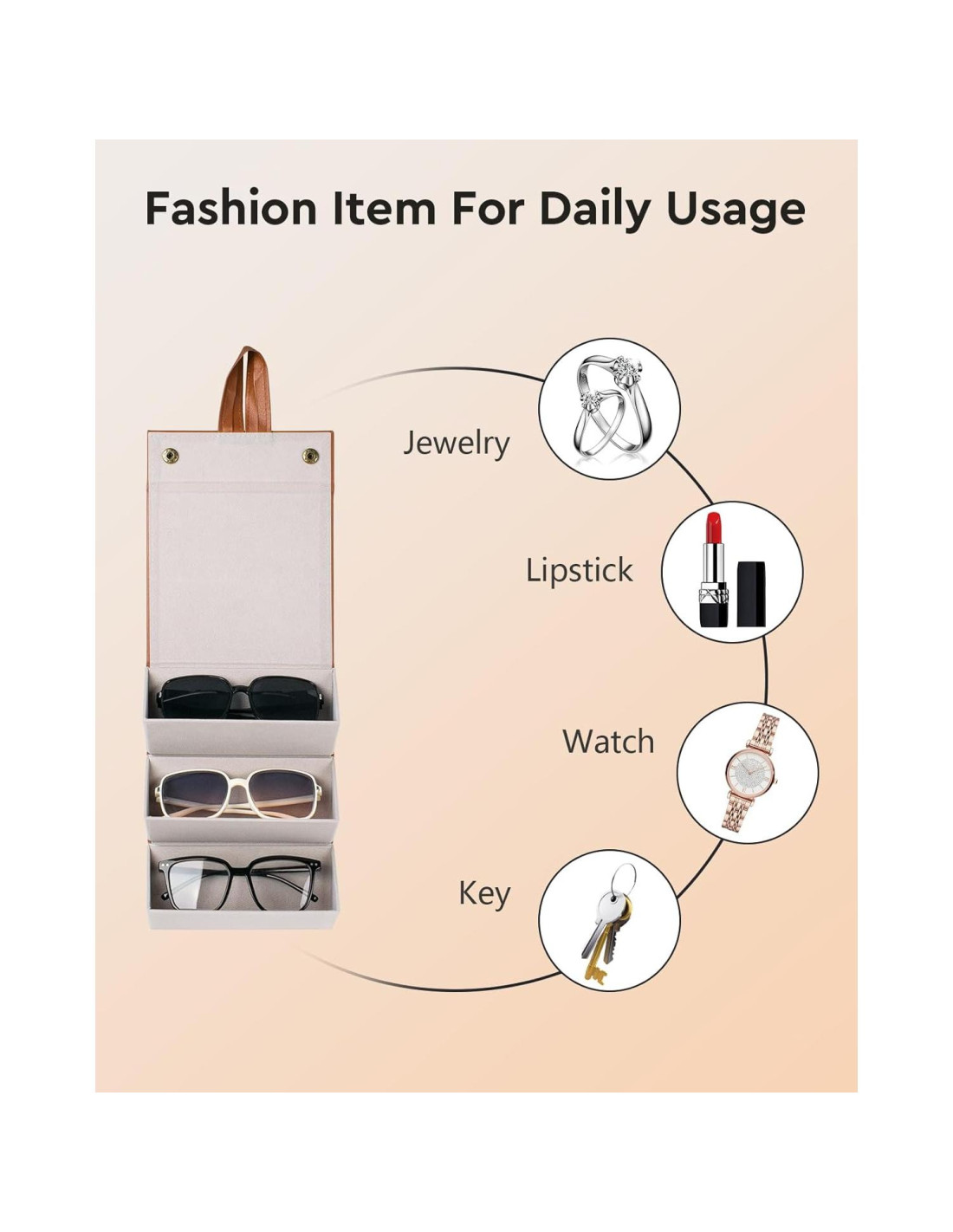- [Uso Multifuncional] Nuestro estuche para gafas no solo sirve como organizador de gafas de sol, sino que también almacena tus gafas, relojes, collares, aretes, cosméticos y otros artículos pequeños. Fuerte protección con una carcasa dura, por lo que mantiene todo seguro.