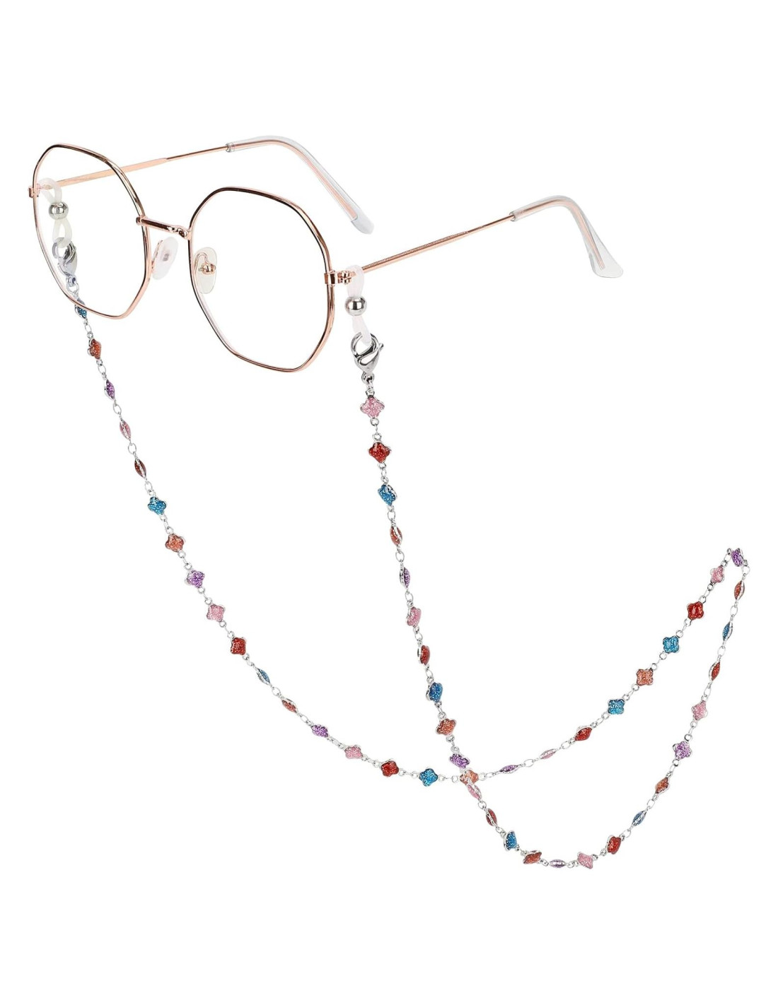 - [ Cadena de Gafas y Cadena de Máscara ] Cadena de gafas exquisita, se puede usar como cadena de gafas, gafas de sol, gafas de lectura, cadena de gafas de seguridad, cadena de máscara, collar de joyería de moda, etc. Al final de la cadena hay dos anillos de silicona con bolas de acero que se pueden ajustar para la tensión para conectar diferentes tipos de gafas. Cuando se quita el anillo de silicona, el broche de langosta de acero inoxidable se conecta directamente a la correa de la máscara, creando una perfecta cadena de máscara.