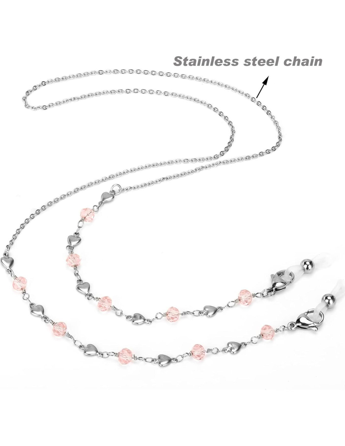 - [ Cadena de Gafas y Cadena de Máscara ] Cadena de gafas exquisita, se puede usar como cadena de gafas, gafas de sol, gafas de lectura, cadena de gafas de seguridad, cadena de máscara, collar de joyería de moda, etc. Al final de la cadena hay dos anillos de silicona con bolas de acero que se pueden ajustar para la tensión para conectar diferentes tipos de gafas. Cuando se quita el anillo de silicona, el broche de langosta de acero inoxidable se conecta directamente a la correa de la máscara, creando una perfecta cadena de máscara.