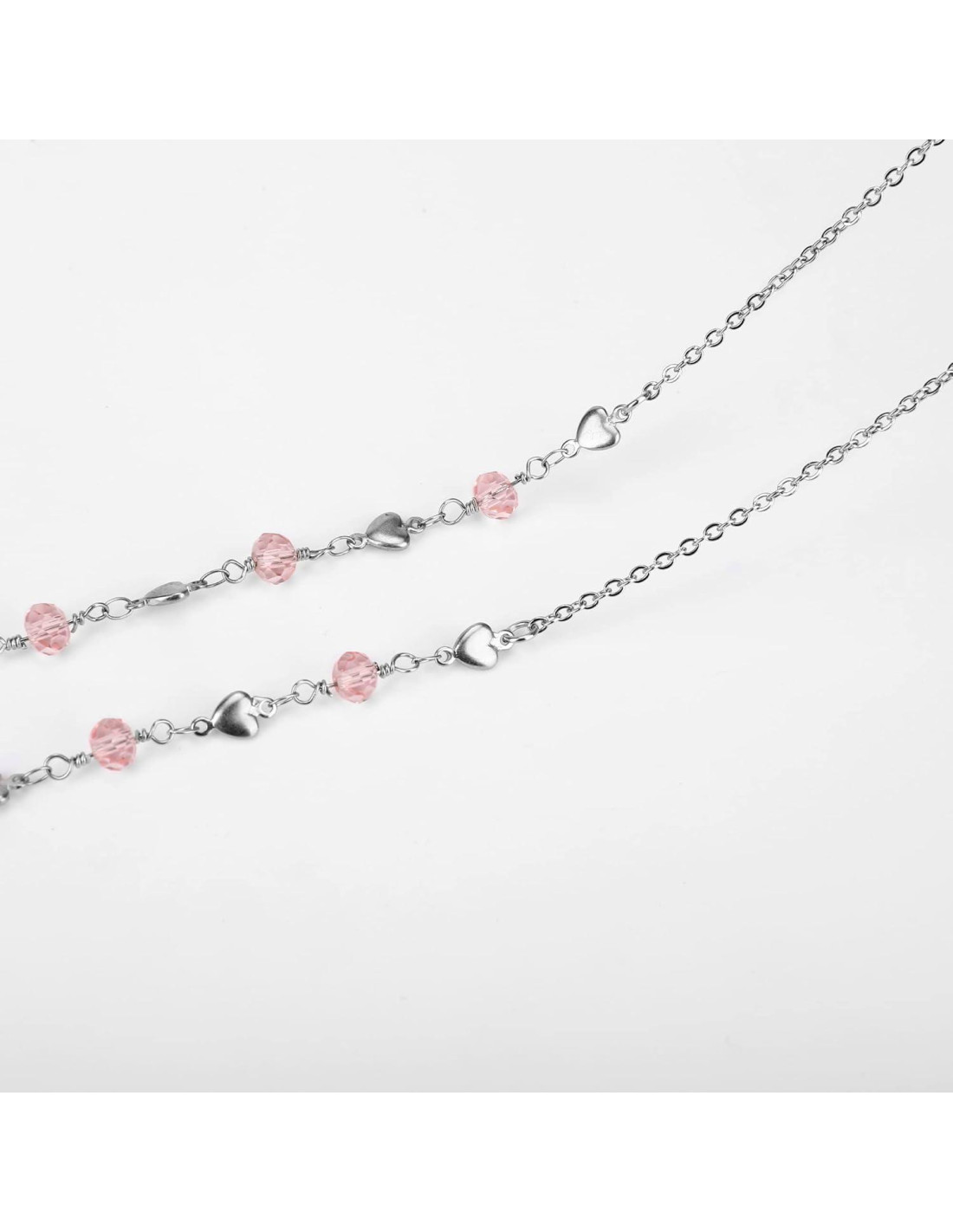- Color: 7-(Corazón de Amor + Perlas Rosadas) Cadena Hecha a Mano(a)