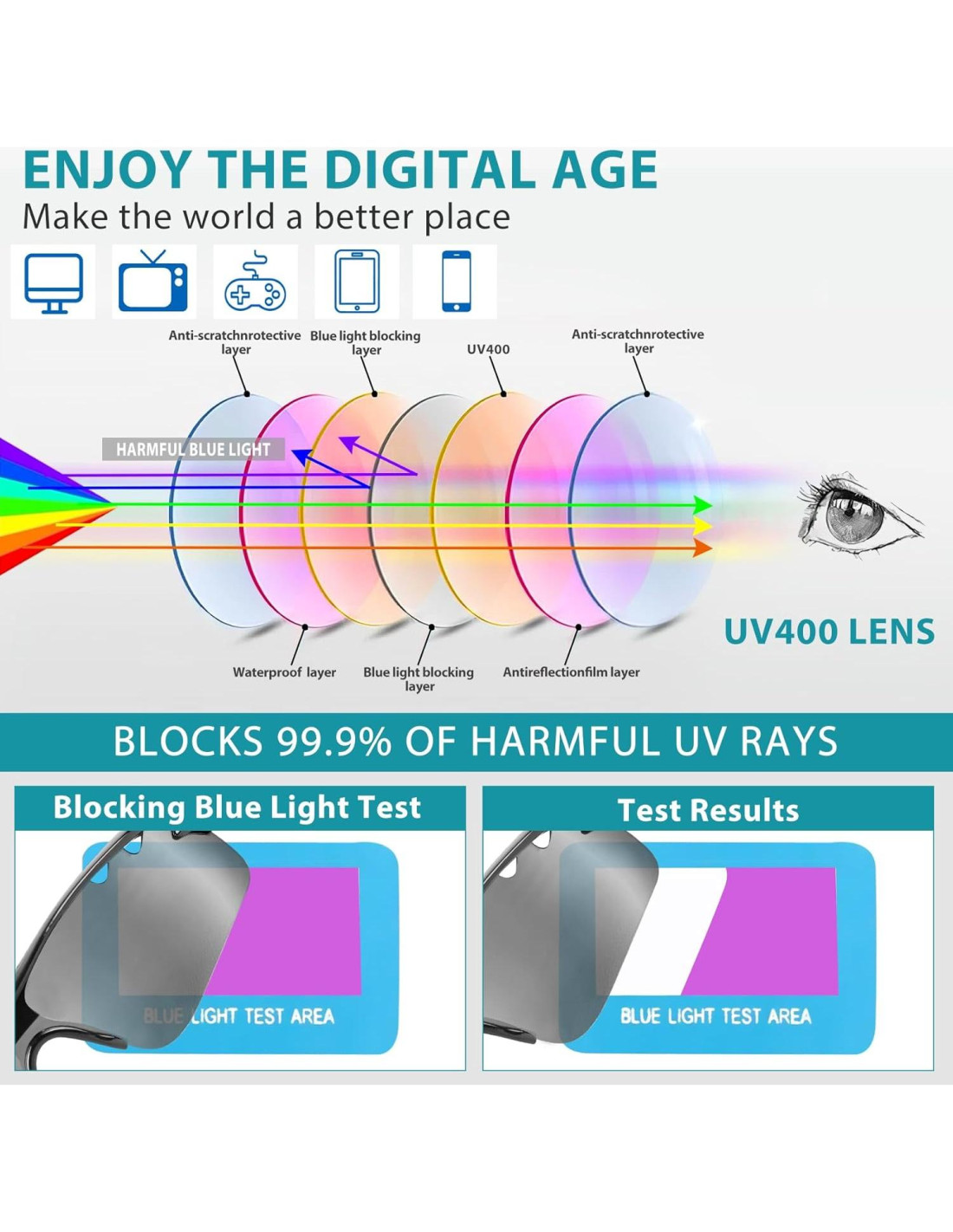 - [Protección UV] Con propiedades de protección UV, estas gafas protegen tus ojos de los dañinos rayos ultravioletas, asegurando una salud ocular duradera y previniendo daños relacionados con el sol.