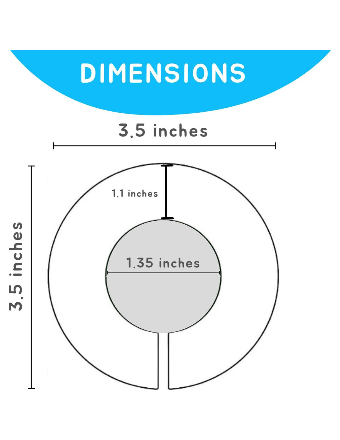 - VERIFICA LAS MEDIDAS DE LA VARILLA - Estos divisores de armario para bebés se ajustan a varillas de ropa con un diámetro de 1.35 pulgadas (3.4 cm) O MENOS. Esto significa que la varilla debe tener 4.2 pulgadas (10.6 cm) de circunferencia O MENOS. Tu varilla debe tener un espacio libre de más de 1.1 pulgadas (2.8 cm) O MÁS por encima de la varilla para que estos se ajusten.