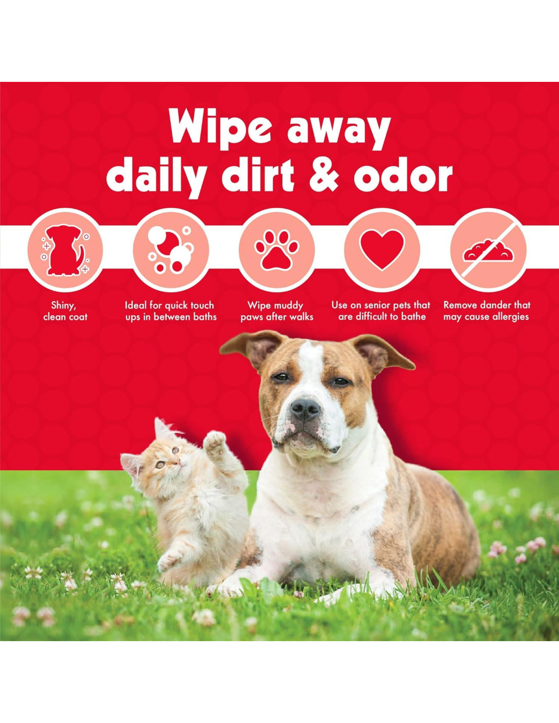 - Toallitas para Mascotas Petkin para Perros y Gatos - Estas grandes toallitas para el cuidado de mascotas son una forma rápida y conveniente de refrescar a tu mascota todos los días. Estas poderosas toallitas limpiadoras eliminan fácilmente la suciedad y el olor diario, como lavarse las manos. Incluye 1 paquete de 100 toallitas.