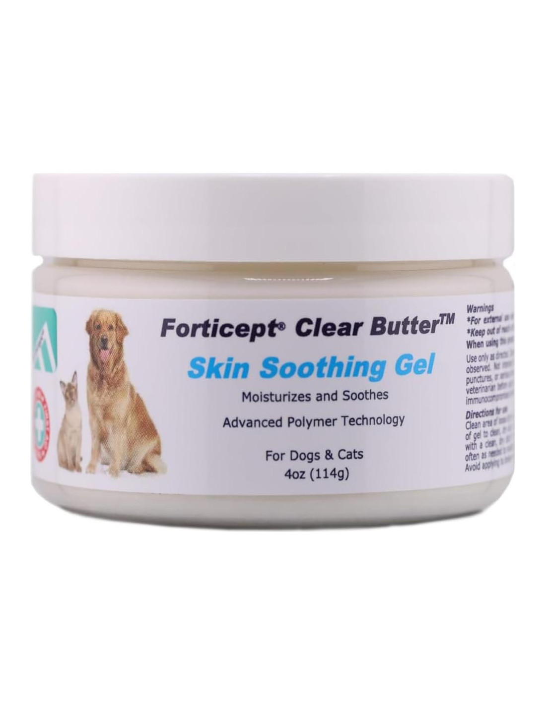 Tratamiento Hidrogel Forticept Clear Butter para Puntos Calientes - El Gel Clear Butter para Puntos Calientes ayuda a aliviar la irritación de la piel, picazón, lamido, mordeduras y rasguños en perros y gatos.