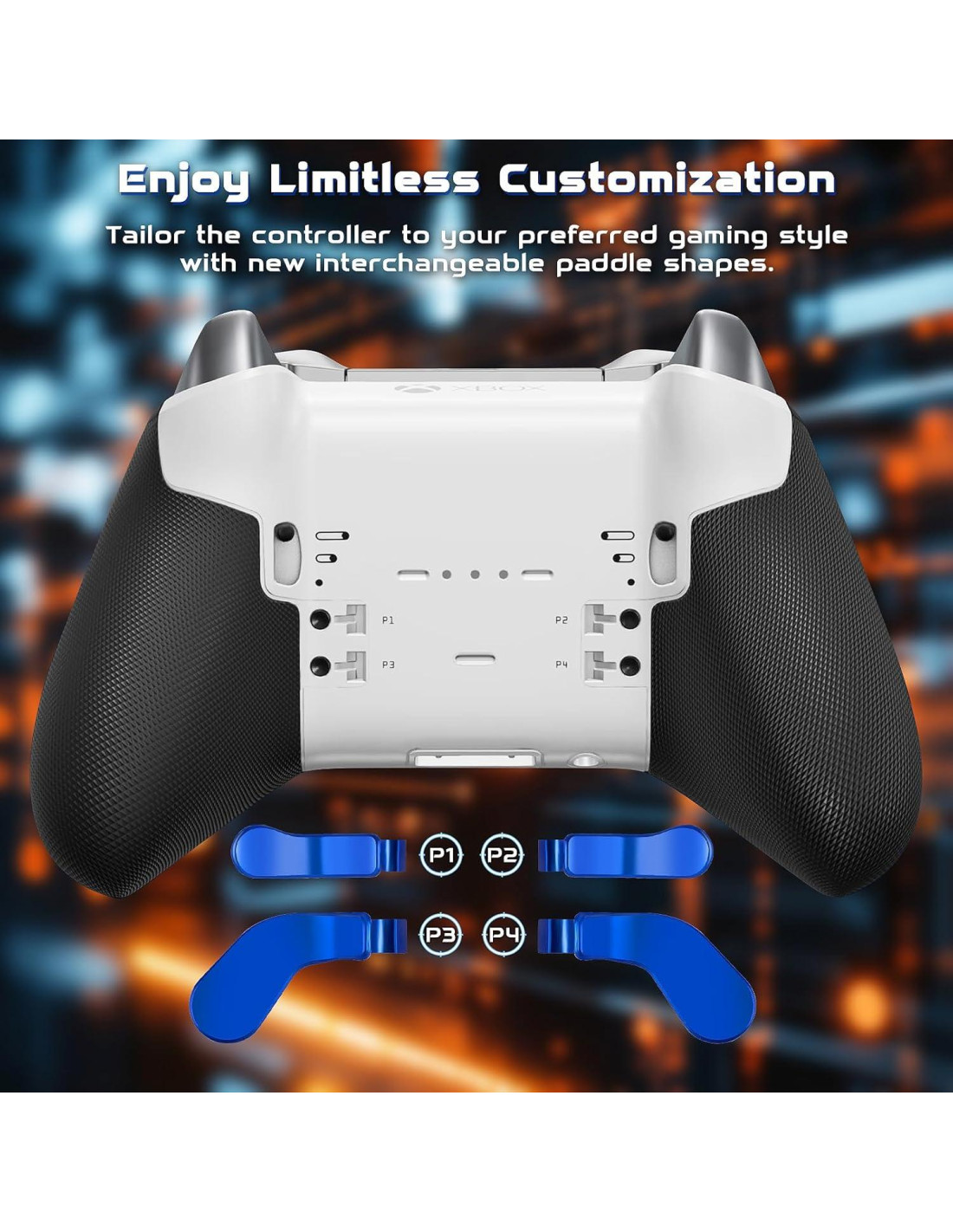- El Paquete Incluye 13 en 1 Accesorios para Xbox Elite Series 2 incluye 6 Joysticks Mod Metálicos Intercambiables (4 clásicos, 1 alto, 1 cúpula), 2 D-pads Azules, 4 Palas Azules (2 medianas, 2 mini), 1 Herramienta de Ajuste Plateada y 1 Bolsa de Almacenamiento Negra.