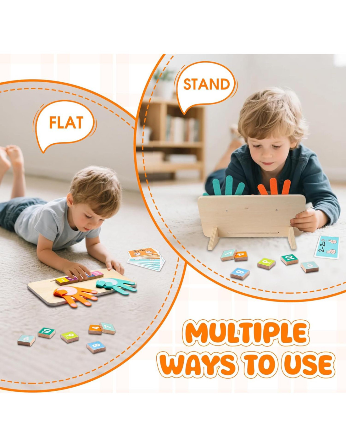 - Qué incluye: Los juguetes de juego manipulativos de matemáticas incluyen 1 tabla de dedos de madera, 13 bloques de números coloridos, 8 tarjetas didácticas y un soporte.