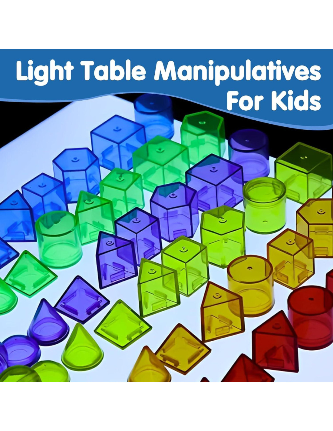 - Seguro y Translúcido: La naturaleza transparente de las formas permite a los niños crear sombras atractivas bajo luces o en la Mesa de Luz, promoviendo su percepción espacial. Los bordes suaves de los sólidos proporcionan horas de juego seguro e imaginativo.