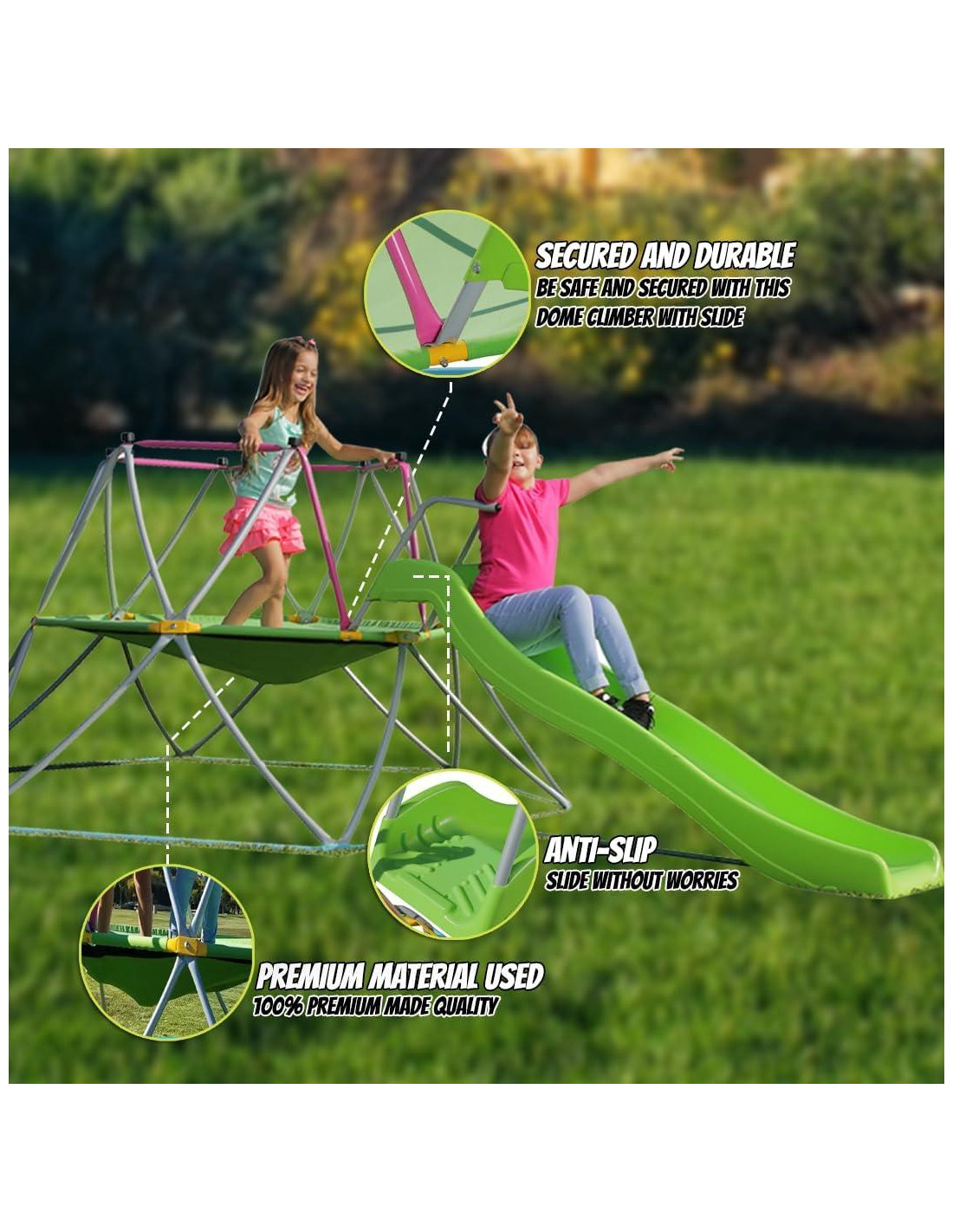 - PLATPORTS Escalador de Cúpula con Tobogán: A los niños les encanta escalar. Paredes, muebles, cúpulas, barras de mono, lo que sea. También les encantan los toboganes; hay algo emocionante en deslizarse por un tubo. Slidewhizzer ha combinado estos dos amores del parque infantil de los niños: un escalador y un tobogán en un tobogán de escalador en cúpula. ¡Este será el juego perfecto al aire libre para una diversión sin electrónica! ¡Deja que tus hijos escalen hasta la cima con el PLATPORTS Escalador de Cúpula con Tobogán!