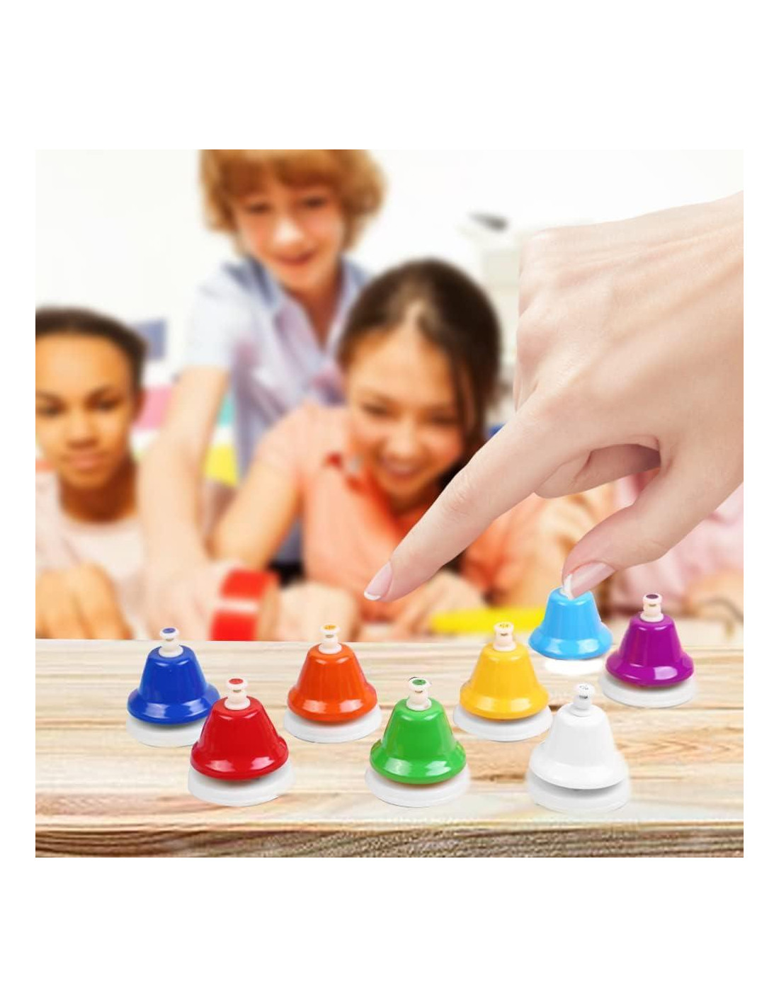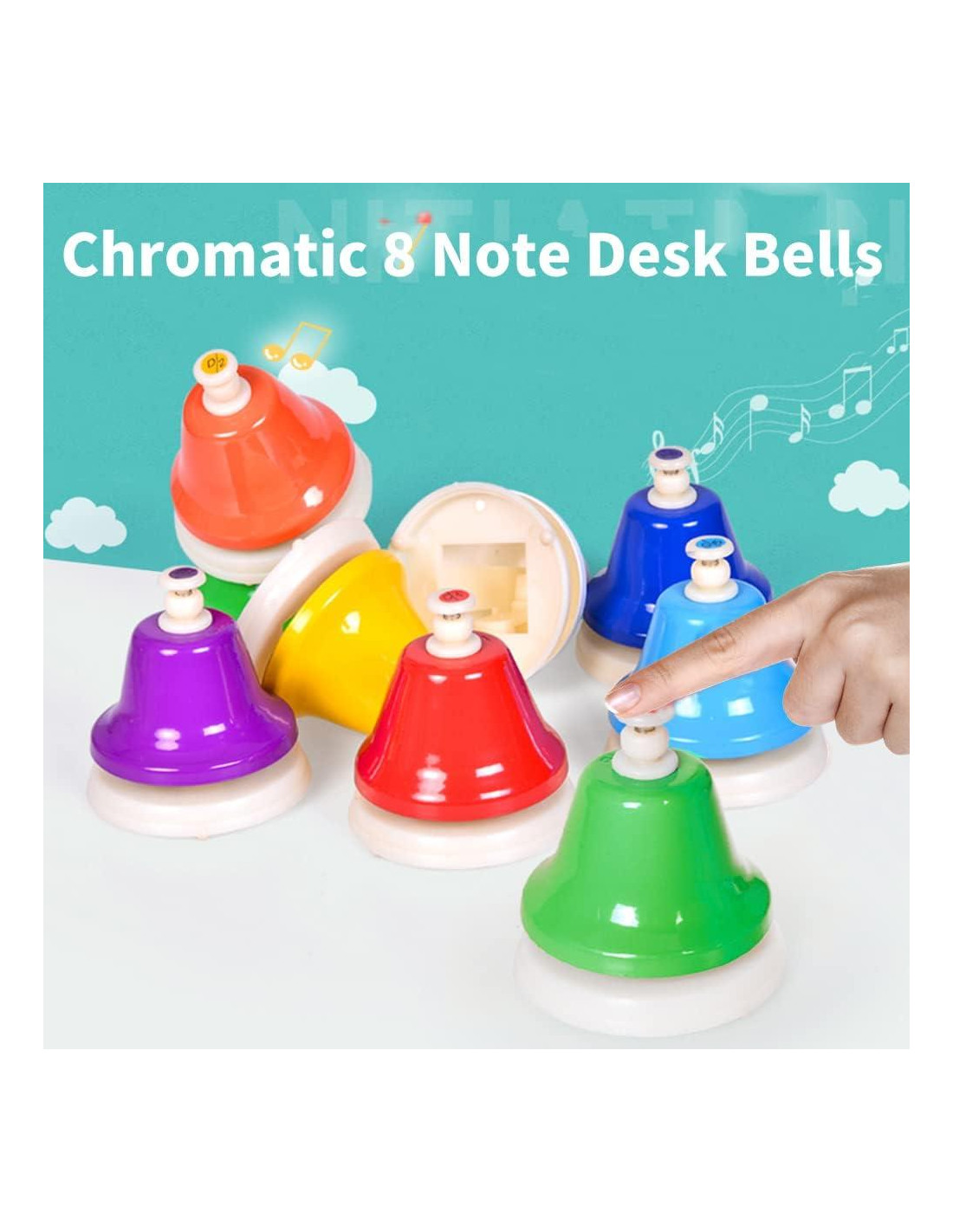 - DESARROLLO VISUAL: Colores brillantes estimulan el desarrollo visual. Este es un set de campanas de escritorio coloridas de 8 notas y tiene código de timbre.