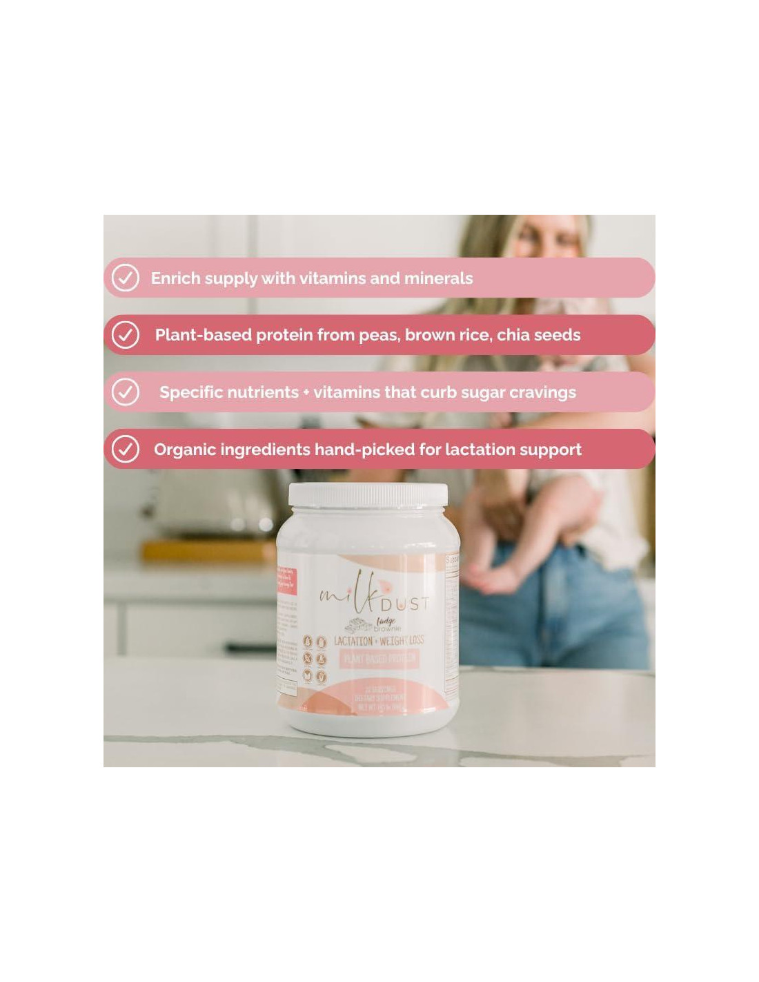 - IMPULSO NUTRICIONAL PARA MAMÁS EN PERIODO DE LACTANCIA: El polvo de proteína de Milk Dust está diseñado para dar a las madres lactantes el impulso de energía y nutrición que necesitan. Nuestro polvo de proteína para lactancia está lleno de vitaminas y minerales esenciales, incluyendo ácido fólico y biotina. Nuestro polvo de lactancia también incluye hierro para ayudar a reponer las reservas del cuerpo que pueden agotarse durante la lactancia.