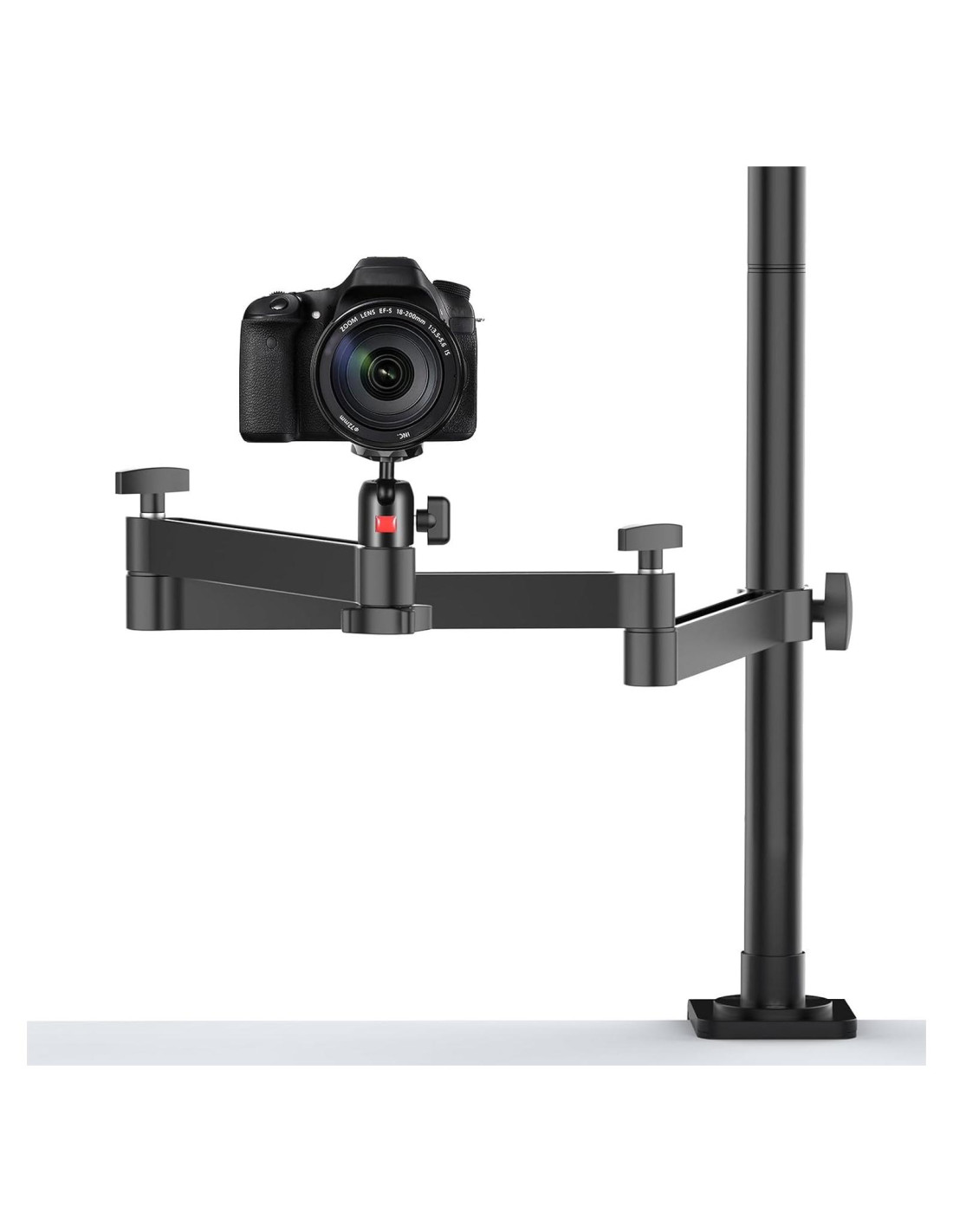 - Soporte de escritorio para cámara con altura del eje central de hasta 70 cm (27.56 pulgadas), sin límite para disparar desde cualquier ángulo o distancia. Brazo extensible super largo de 75 cm (29.53 pulgadas), tres etapas de ajustes libres, desafía e inspira tu creatividad.