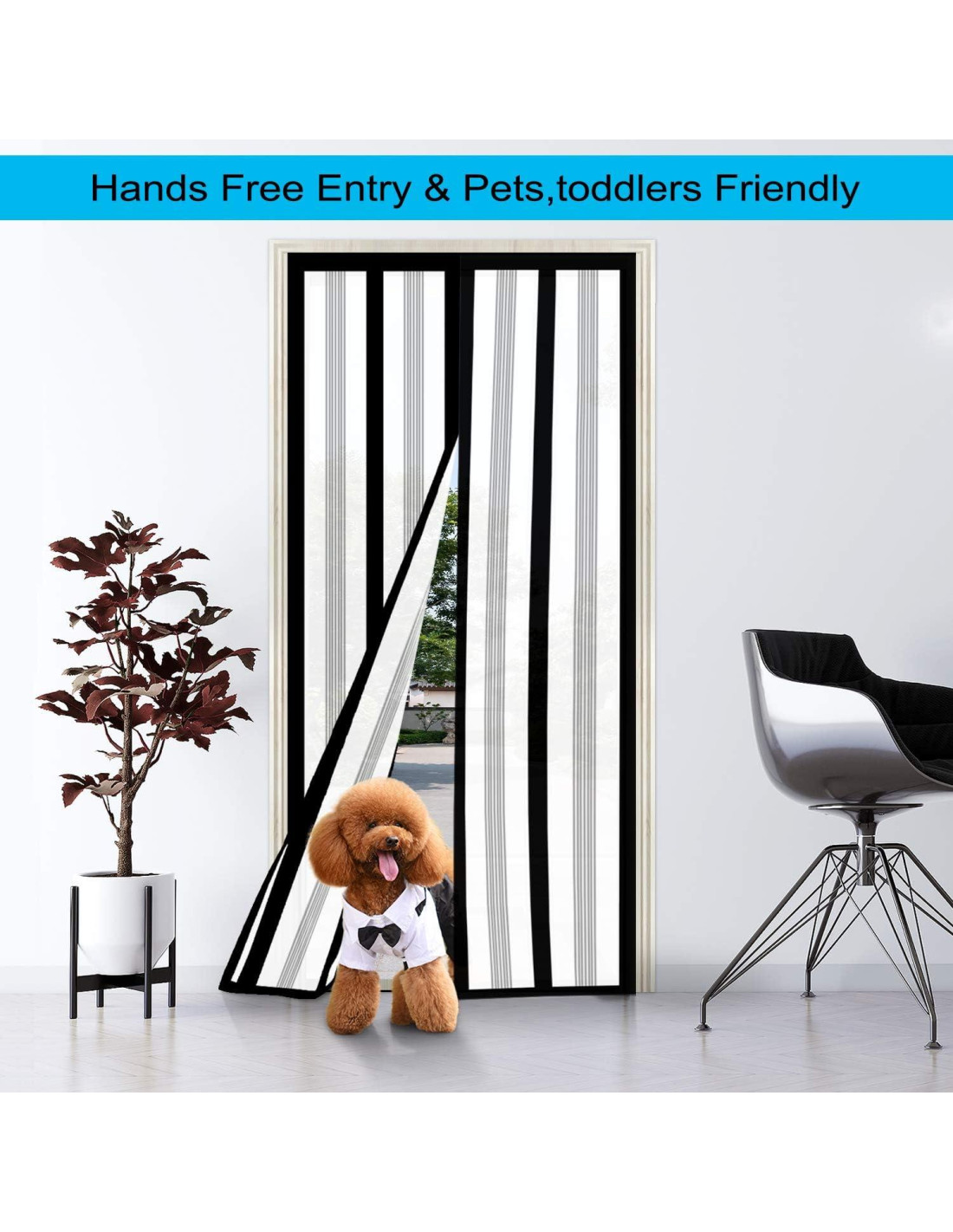 - Fácil de Instalar La cortina de entrada es fácil de instalar. No se requieren herramientas, simplemente retire el respaldo adhesivo, aplique en el marco de la puerta. Nuestra cortina de pantalla utiliza el diseño de Cinta Mágica de marco completo. Viene con un rollo de cinta mágica para evitar caídas y permitirle quitar la pantalla de la puerta en cualquier momento, también una caja de chinchetas para asegurar que la pantalla esté en su lugar de manera más estable.