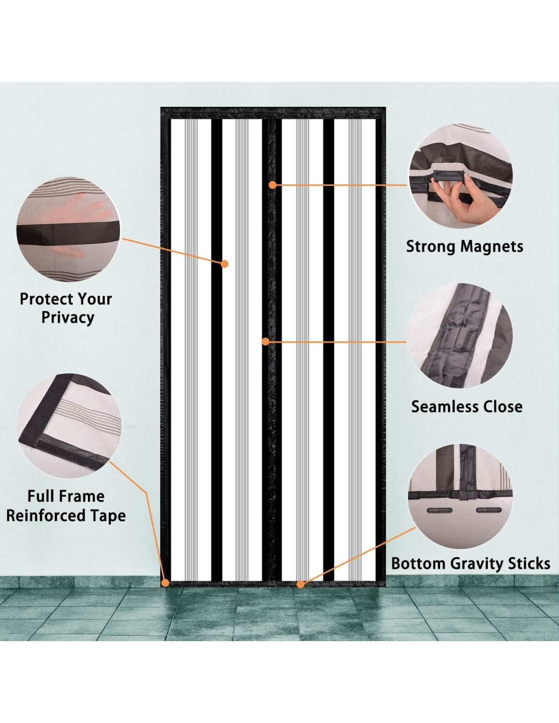 - Hacer la Vida Más Fácil La costura central de las puertas de pantalla con imanes está estratégicamente alineada con 19 potentes cubos magnéticos que permiten que la puerta se abra fácilmente y se cierre sin problemas. La puerta de pantalla temporal puede usarse en muchos lugares, como puertas de entrada principales, oficinas, tiendas, porche, balcón, garaje, puertas corredizas. También es particularmente adecuada para la cocina, que puede prevenir que los olores de la cocina se propaguen a otras habitaciones.