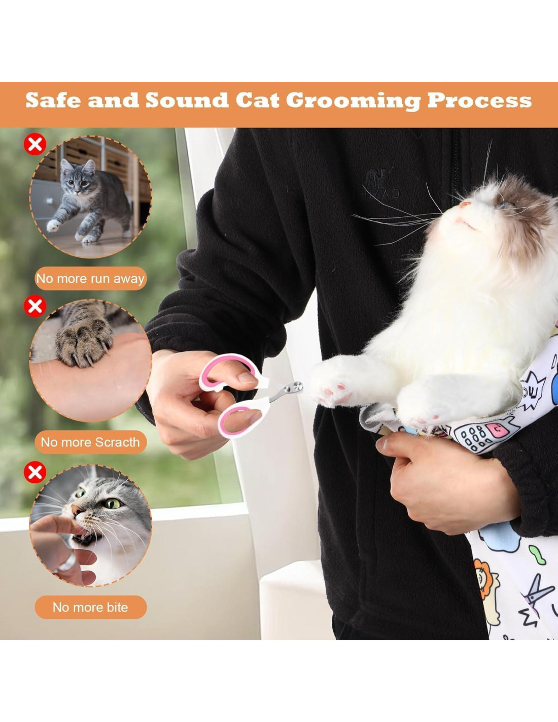 - [Envoltura para Gato Tranquila y Acogedora] : La envoltura para gatos para cortar uñas está diseñada para proporcionar una experiencia tranquila y acogedora para tu amigo felino. Hecha de un tejido tejido de alta tecnología con un interior de microfibra suave, asegura que tu gato se sienta seguro y cómodo durante las sesiones de aseo.