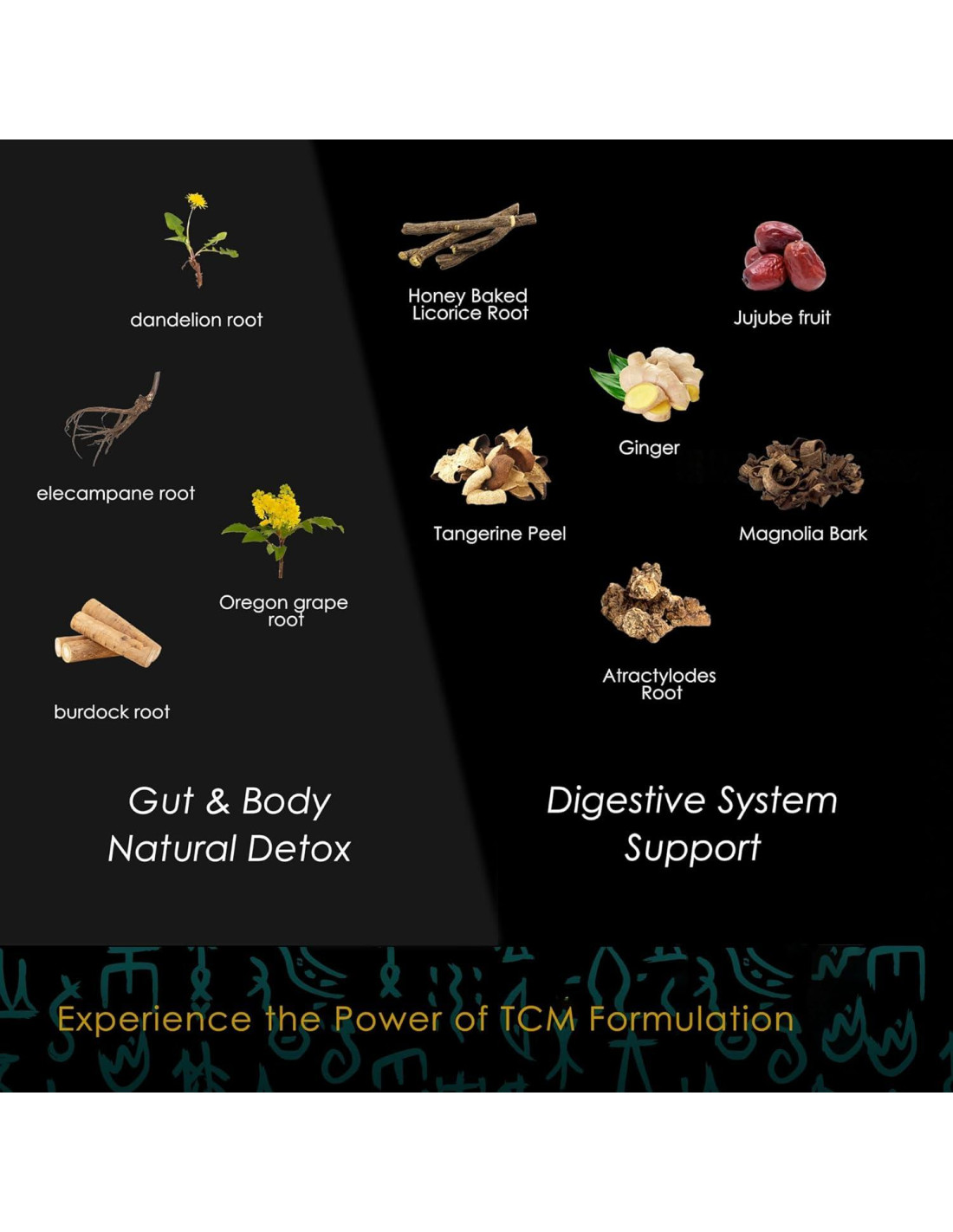 - Apoyo Integral para el Intestino y la Digestión. Hierbas cuidadosamente seleccionadas en esta fórmula inspirada en la MTC trabajan juntas para proporcionar un apoyo constante y equilibrado para la salud digestiva, promoviendo el confort y la vitalidad en general.