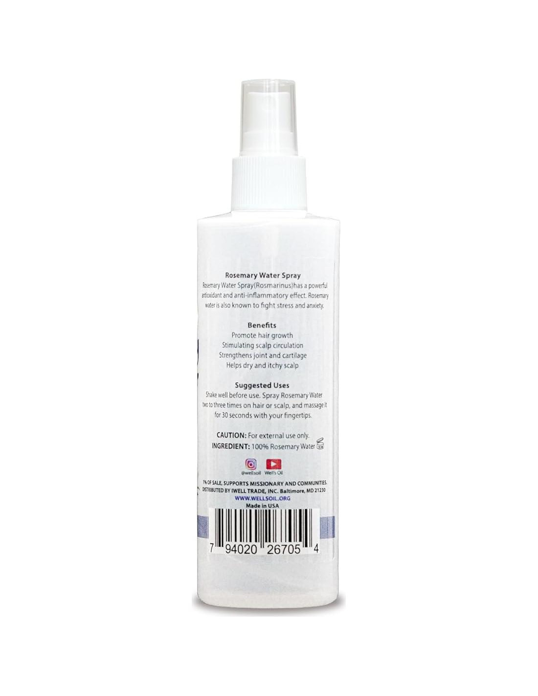 - Cómo Usar: El Agua de Menta de Well's se puede usar siempre que se necesite hidratación. Es ideal como bruma para cabello y cuero cabelludo o como tónico para la piel al rociar directamente sobre la piel o mezclar con cremas y lociones.
