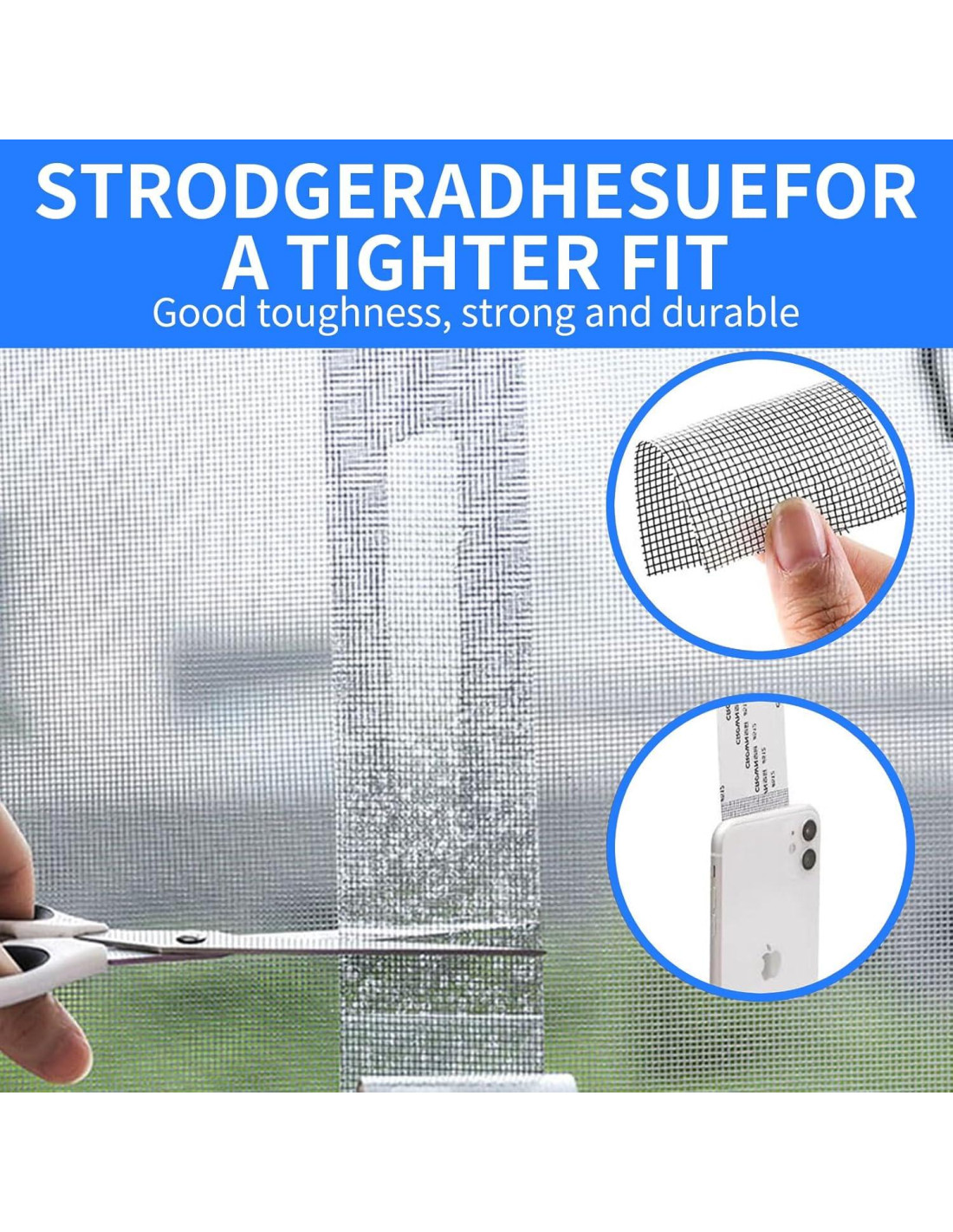 - [Material Robusto] Esta cinta está hecha de malla de fibra de vidrio de alta calidad, es resistente y resistente a desgarros, garantizando una adhesión duradera a pantallas de ventanas o puertas.