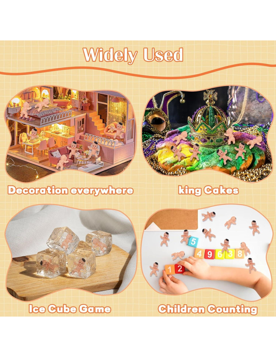 - Lista de Paquete: Recibirás 60 bebés de plástico latinos, cantidad suficiente, cantidad y variedad de colores para juegos de cubos de hielo, reconocimiento de números, bebés de pastel rey, escóndelos por tu casa, tiempo de manualidades DIY, y juegos de ducha de bebés mi agua rompió