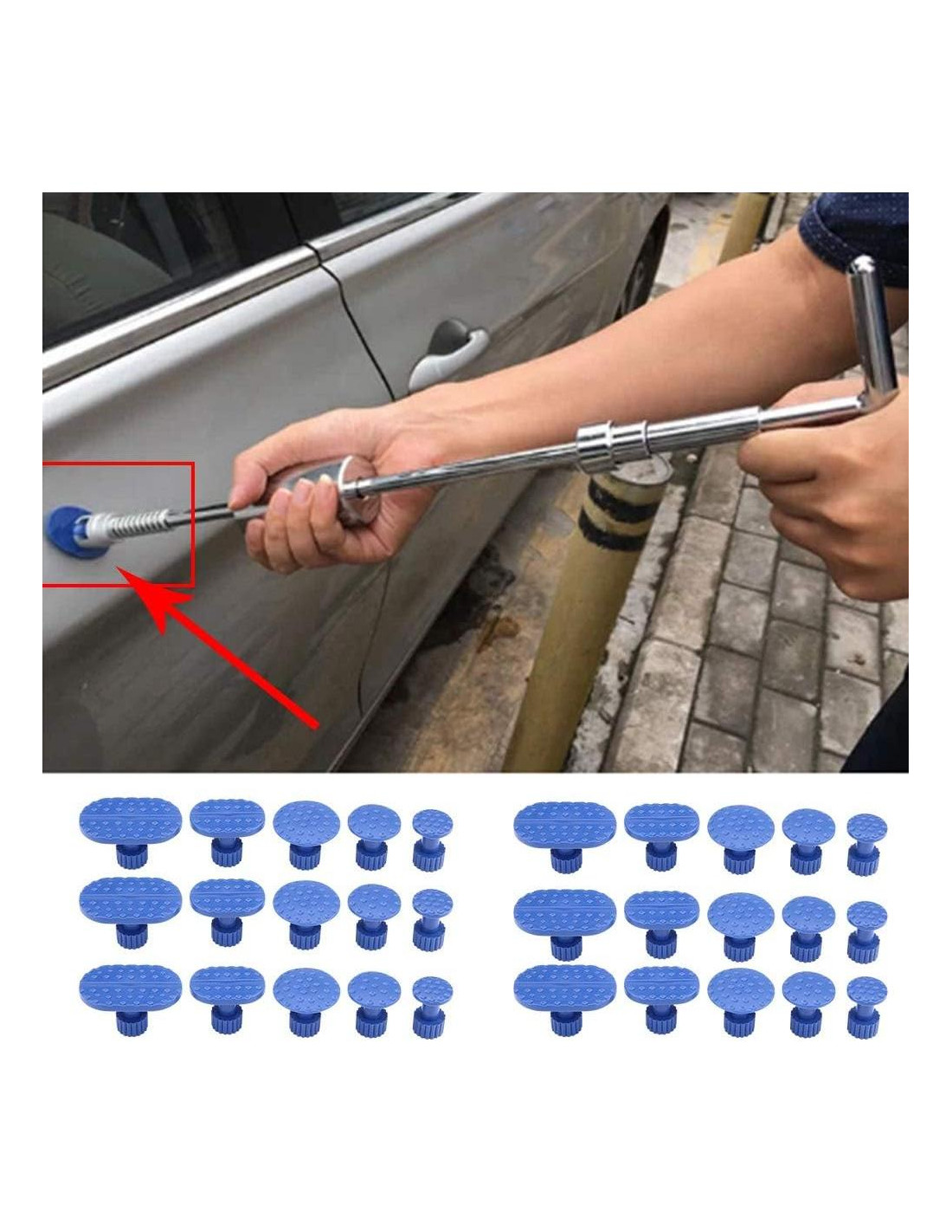 - Reparación eficiente de abolladuras: Estas pestañas de pegamento para reparación de abolladuras sin pintura pueden reparar abolladuras y evitar daños a la pintura original; las pestañas de extracción de abolladuras se pueden usar junto con un martillo en T o un martillo deslizante con buenos resultados
