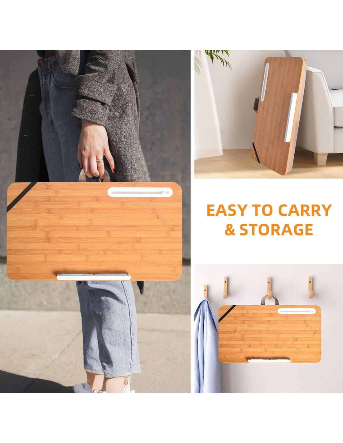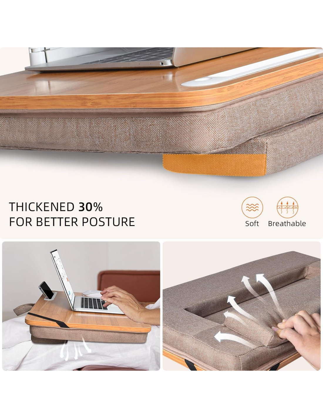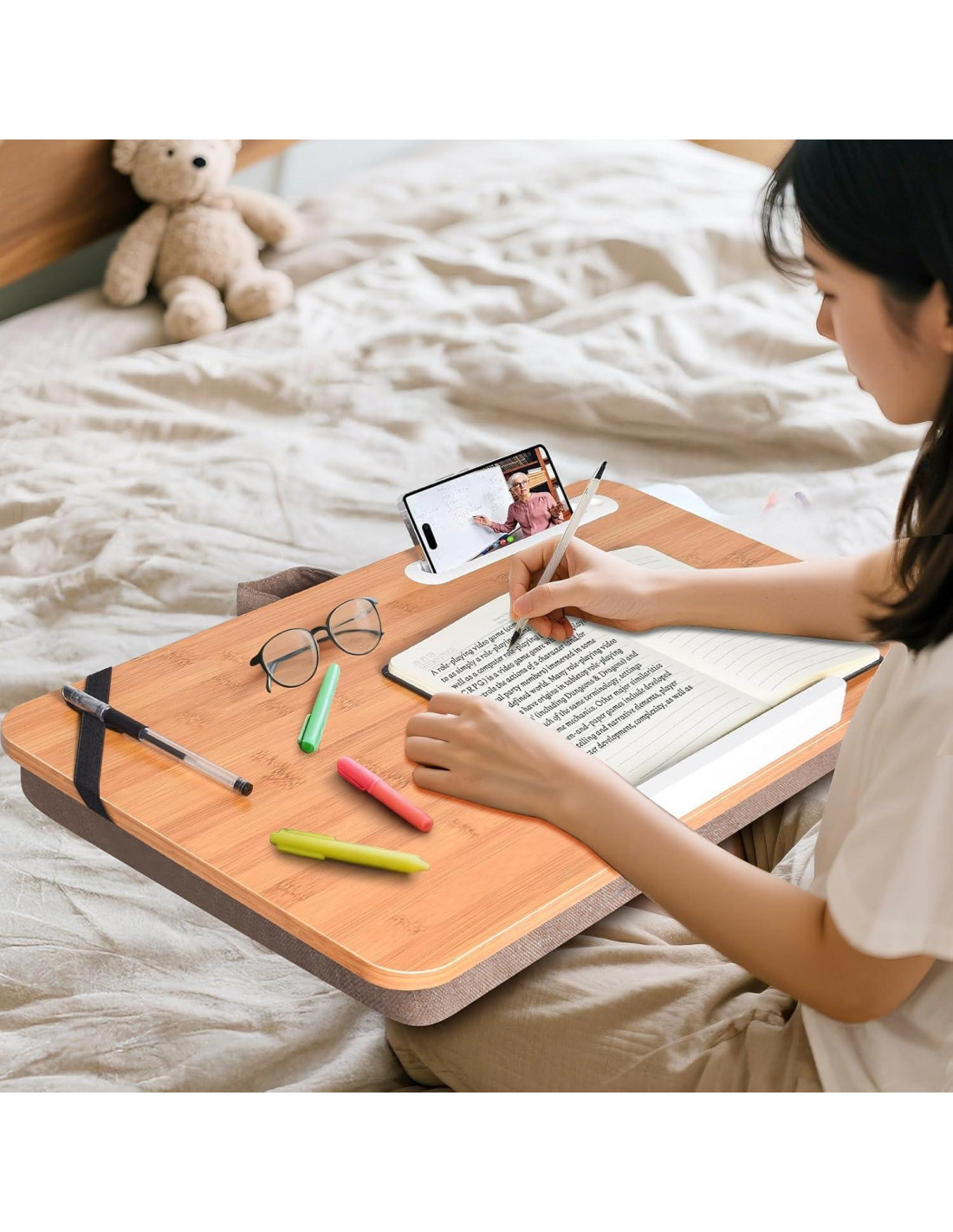 - Diseño de Madera y Cojín Premium: Fabricado con madera duradera y un cojín suave, nuestro escritorio de regazo extra grande cuenta con ranuras convenientes para teléfonos, bolígrafos y tabletas, ofreciendo el espacio de trabajo más amplio disponible.