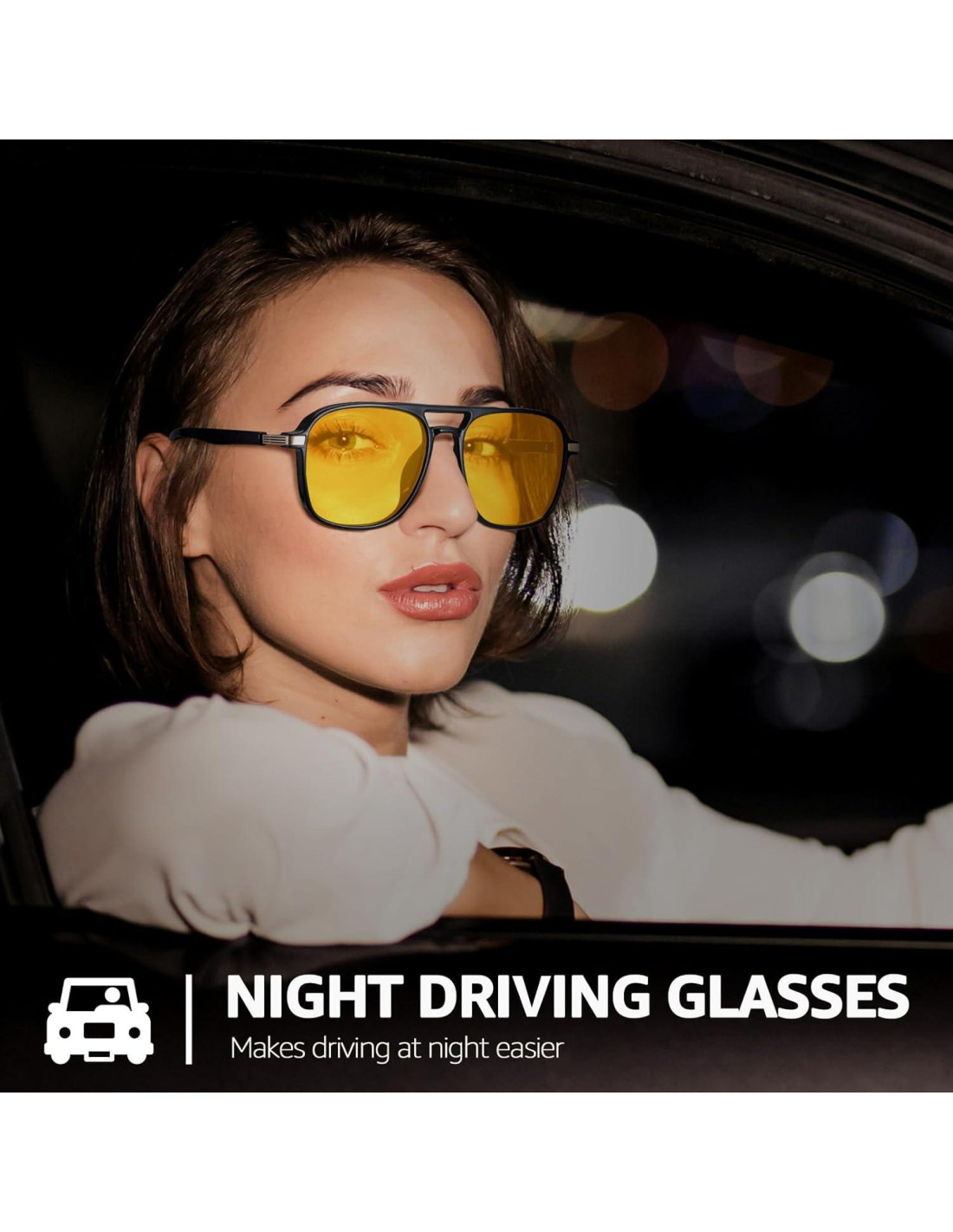 - Calidad Superior de Lentes - Estas gafas de conducción nocturna cuentan con lentes polarizados de alta definición que filtran el deslumbramiento y mejoran la claridad, para una mejor visión nocturna y en condiciones de poca luz. La protección UV400 también protege tus ojos durante el día.