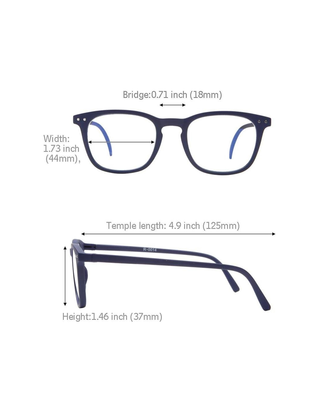 - Ancho de lente: 1.73 pulgadas (44 mm), altura de lente: 1.46 pulgadas (37 mm), ancho del puente de la nariz: 0.71 pulgadas (18 mm), longitud de la patilla: 4.9 pulgadas (125 mm)