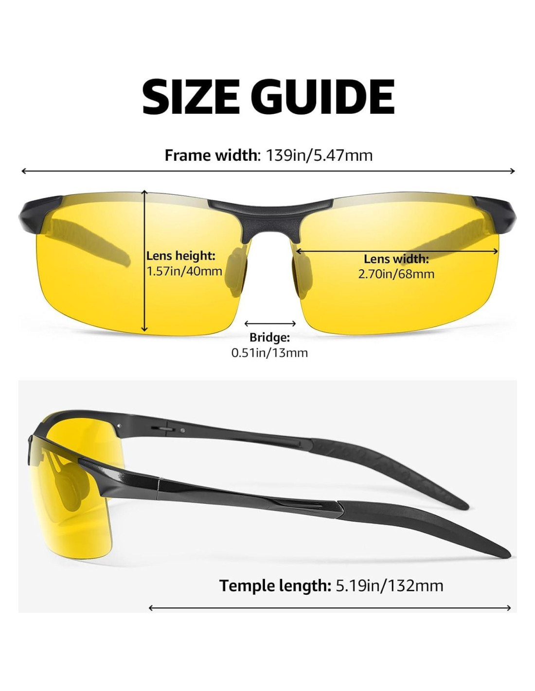 - Estilo Envolvente para Deportes: Las gafas deportivas de visión nocturna LVIOE con diseño envolvente pueden ajustarse cómodamente a tu rostro y pueden proteger tus ojos del viento, la lluvia y todo tipo de fuentes de luz dura, protegiendo completamente tus ojos. El marco es cómodo de llevar y no es fácil de mover, lo que es la elección correcta para ti cuando sales, haces deportes y conduces.
