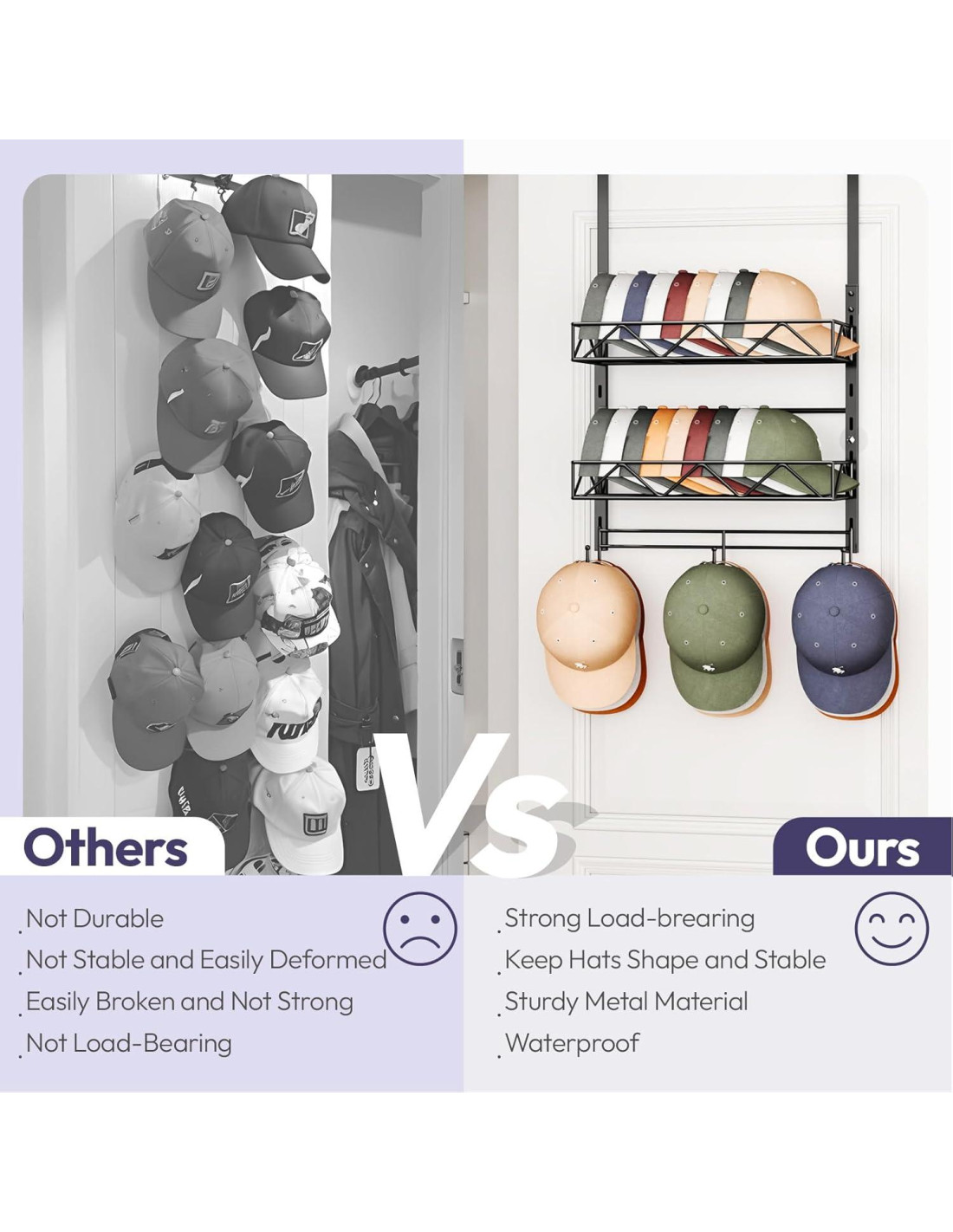 - [Exhibición Elegante para Tu Colección]: Muestra tus gorras con estilo con esta solución de exhibición de sombreros, que también funciona como un estante para gorras de béisbol y organizador de sombreros para la pared. Su diseño de estante para la puerta asegura un fácil acceso, mientras que su funcionalidad de estante para gorras mantiene todo organizado. Perfecto para el organizador de sombreros para hombres o coleccionistas de sombreros, esta opción de estante para la puerta es tanto funcional como decorativa.